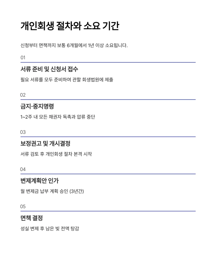 개인회생 신청 절차와 소요 기간 (신청부터 면책까지)