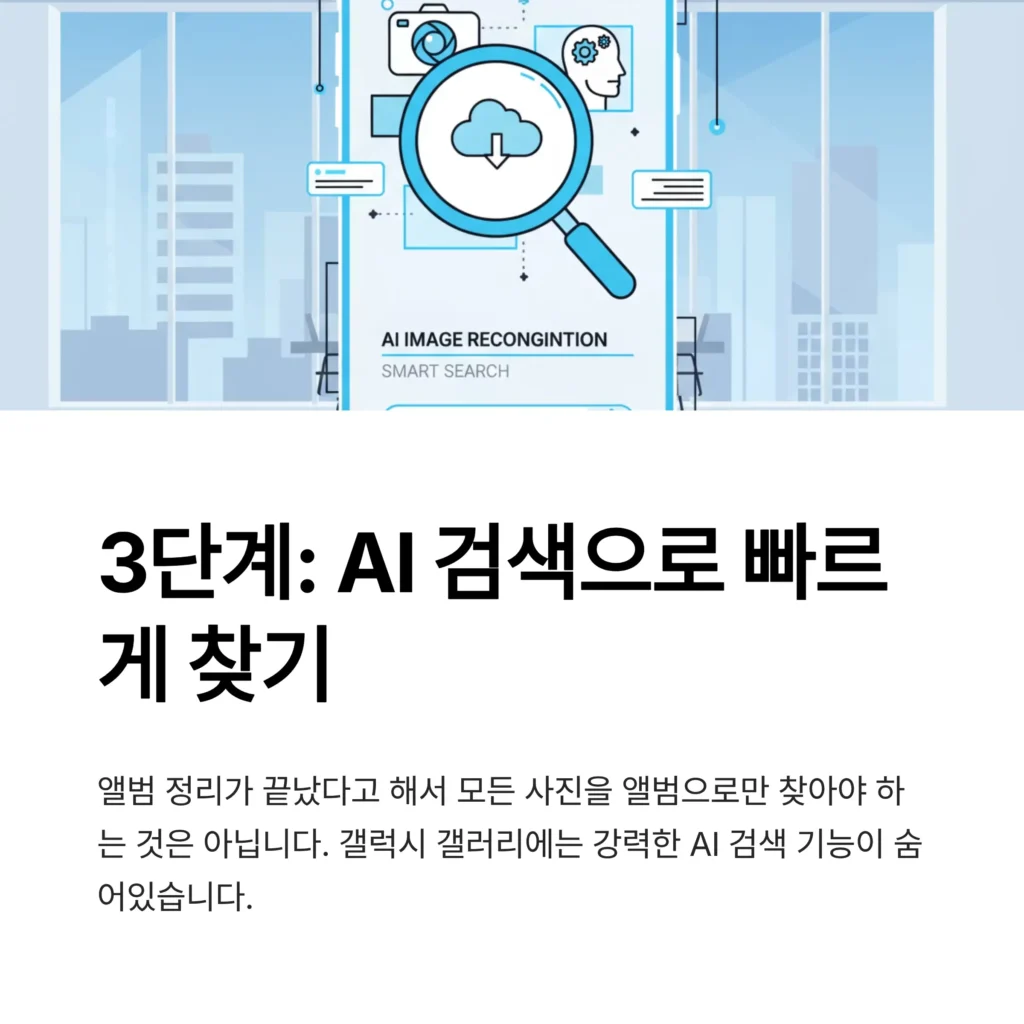 앨범 정리가 끝났다고 해서 모든 사진을 앨범으로만 찾아야 하는 것은 아닙니다. 갤럭시의 갤러리에는 아주 강력한 AI 검색 기능이 숨어있습니다.