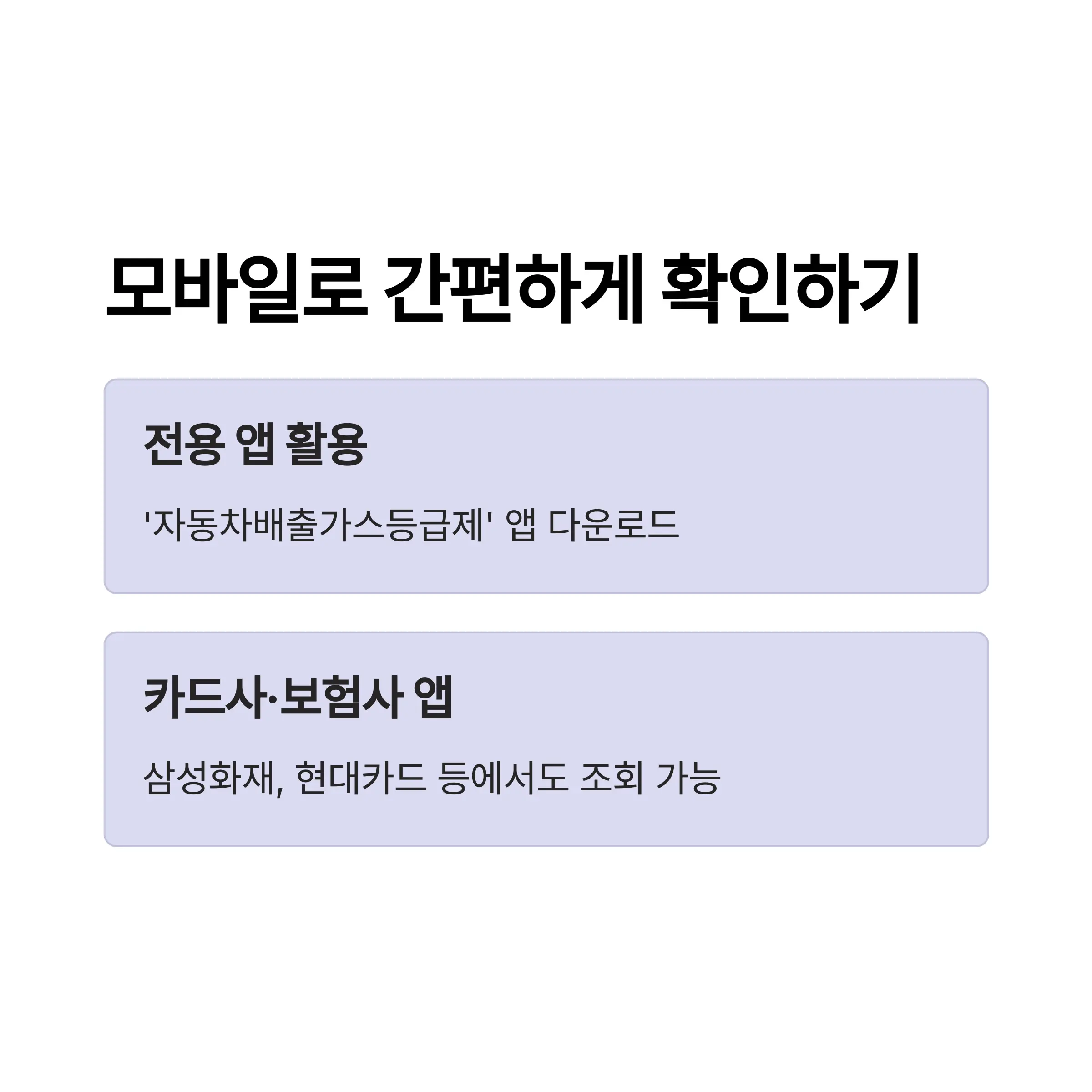 - 일부 카드사, 보험사 앱(삼성화재, 현대카드 등)에서도 배출가스 등급 조회 서비스 제공