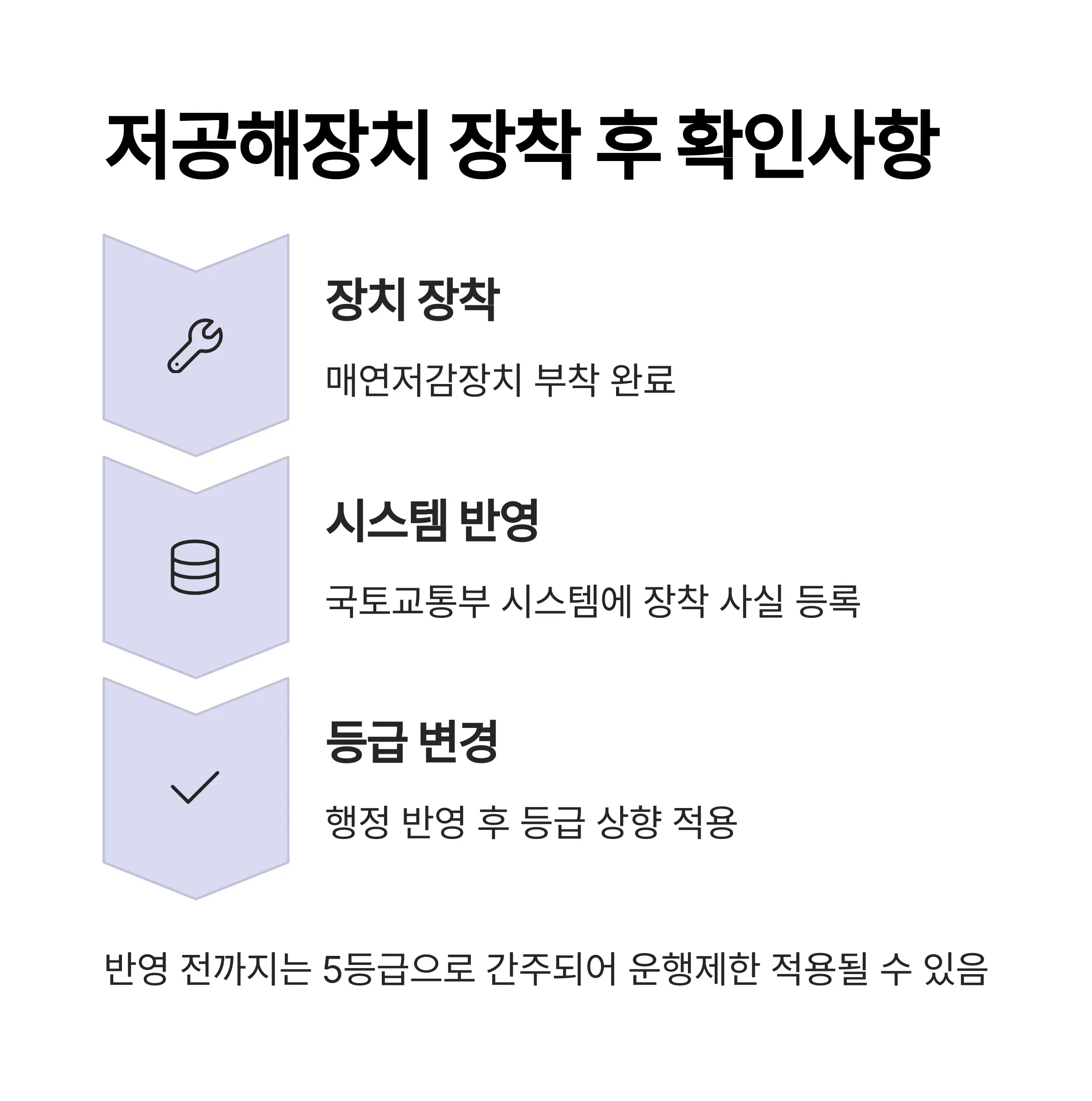 - 등급 상향 적용 전까지는 기존 5등급으로 간주되어 운행제한 적용될 수 있으므로 반드시 행정 반영 상태를 확인해야 합니다.