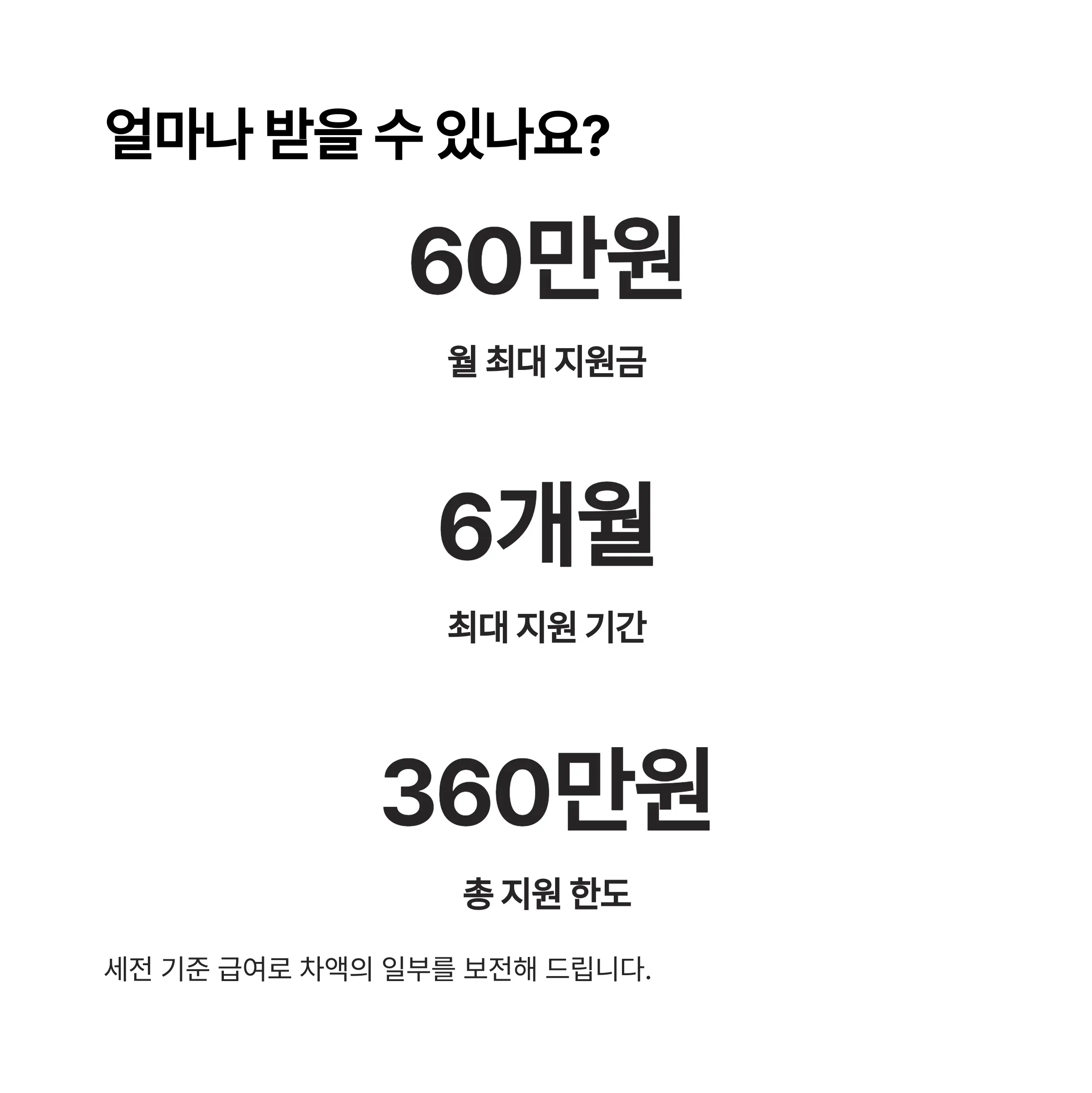 • 최대 6개월간 지원 (총 360만 원 한도)