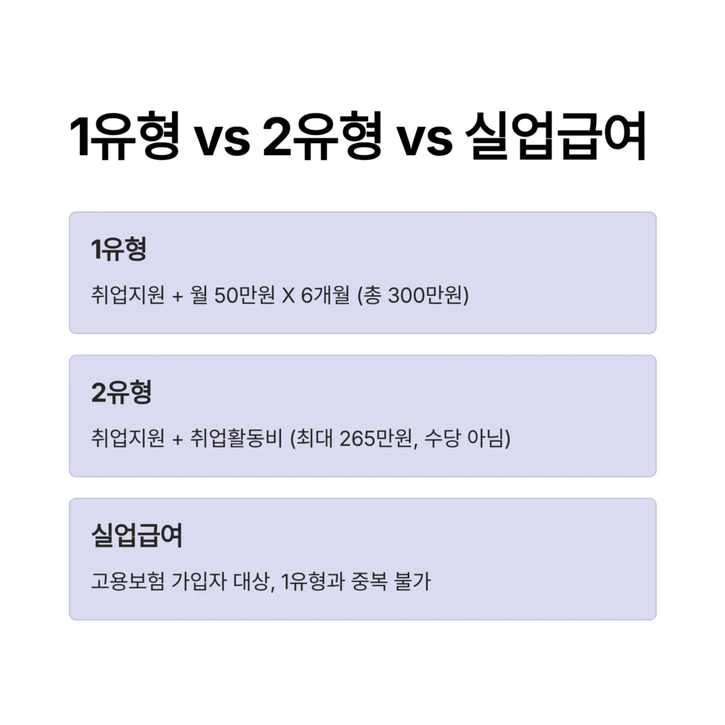 - 2유형: 취업지원 서비스 + 취업활동비 (최대 265만원) 지급 (수당 아님)