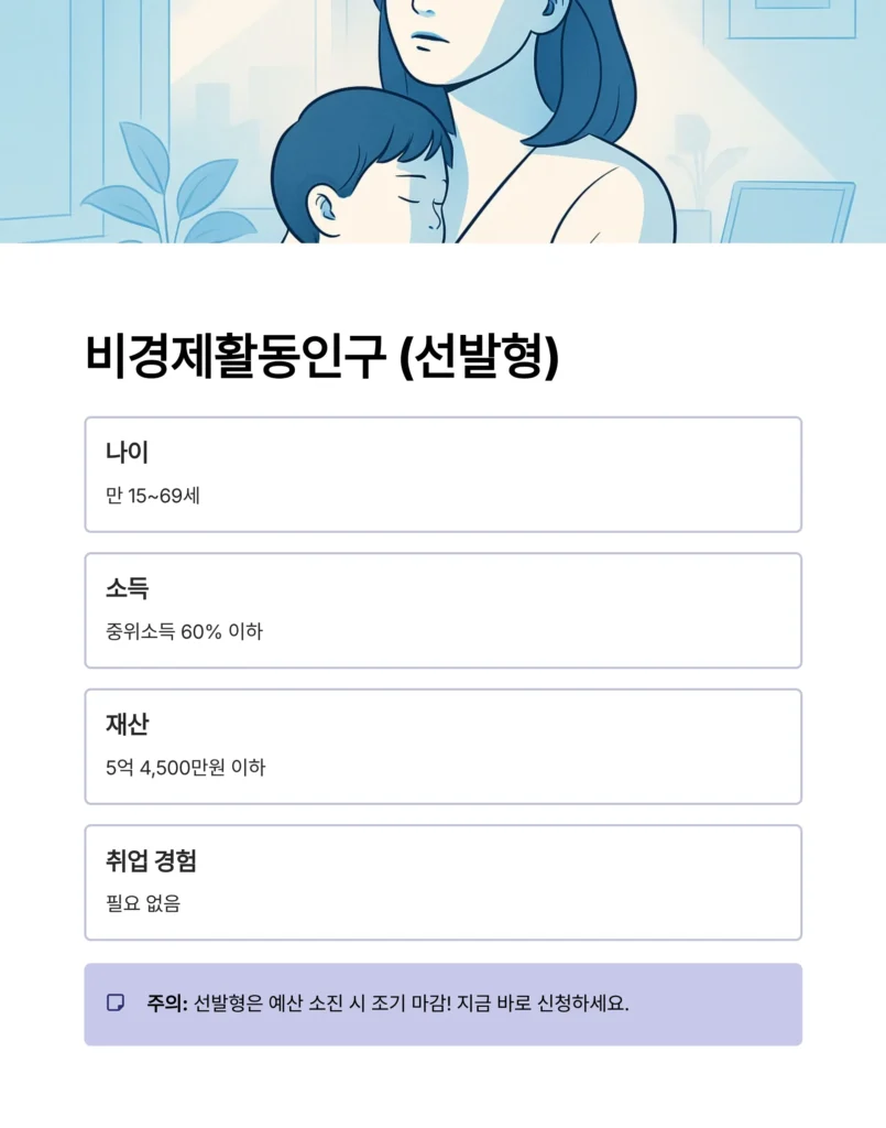 이 글 하나로 3가지(요건심사형, 청년특례, 비경활) 유형 중 내가 어디에 속하는지 월 50만원 수당을 받기 위한 정확한 조건을 명쾌하게 진단해 드리겠습니다.