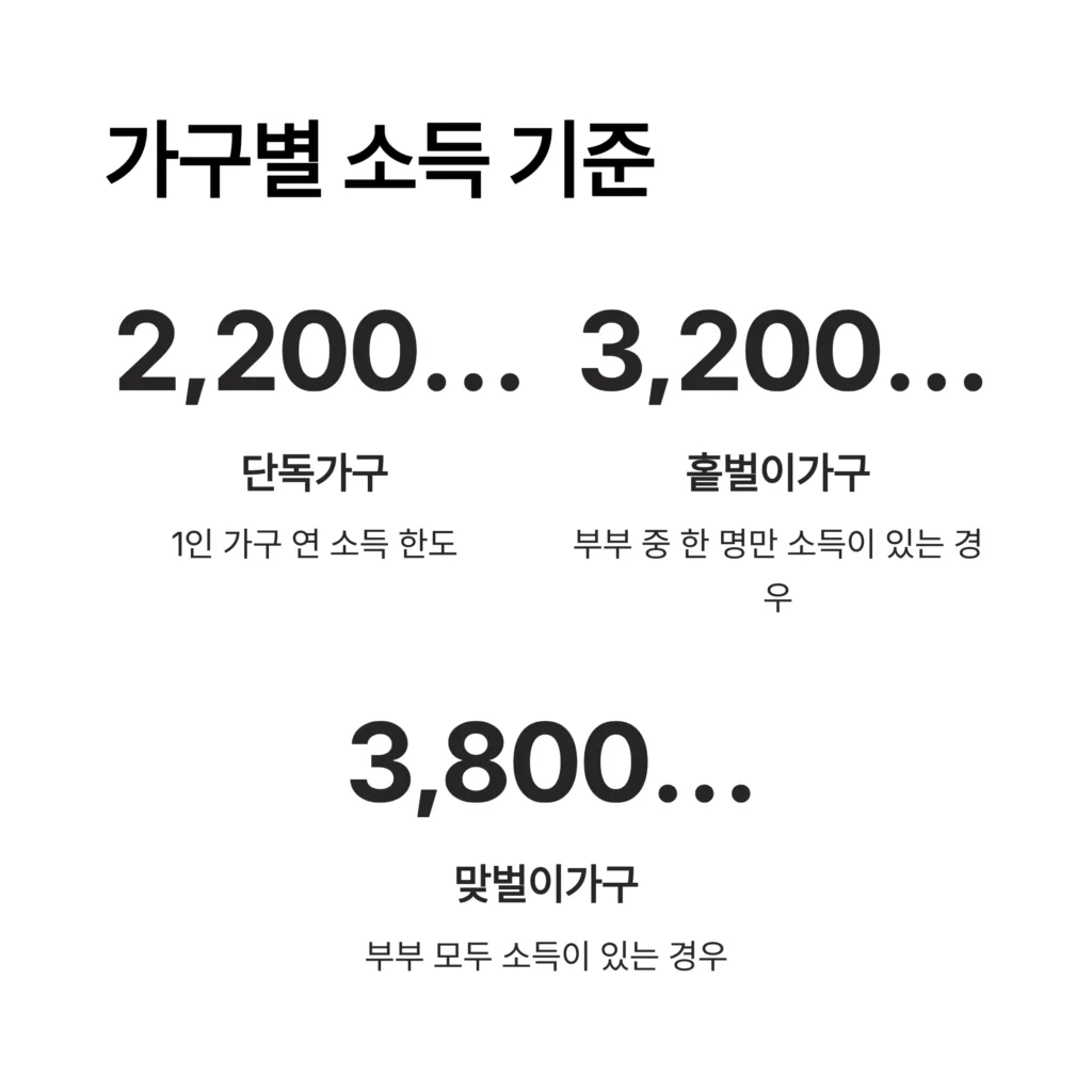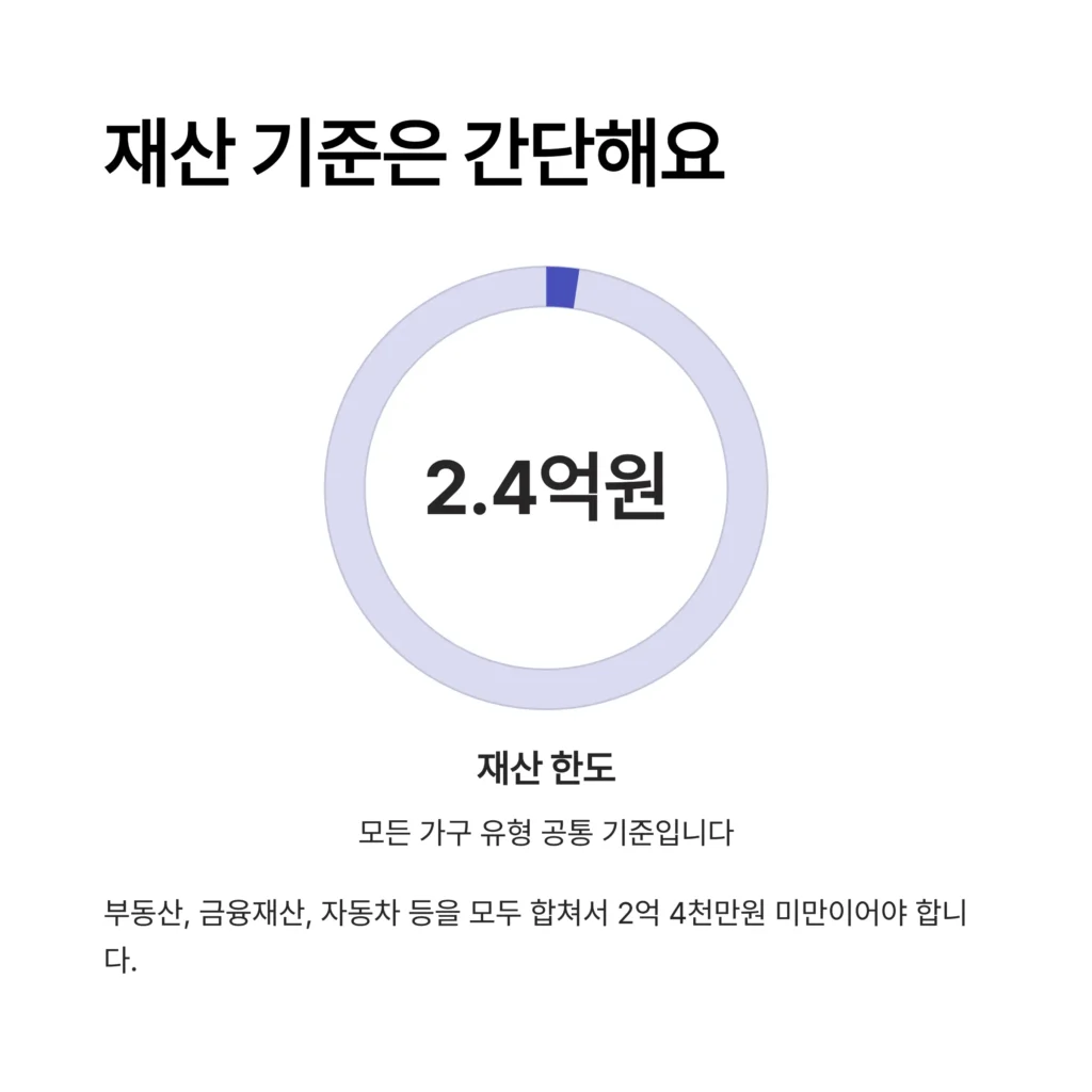 • 모든 가구 유형 공통으로 2억 4천만 원 미만이어야 합니다.