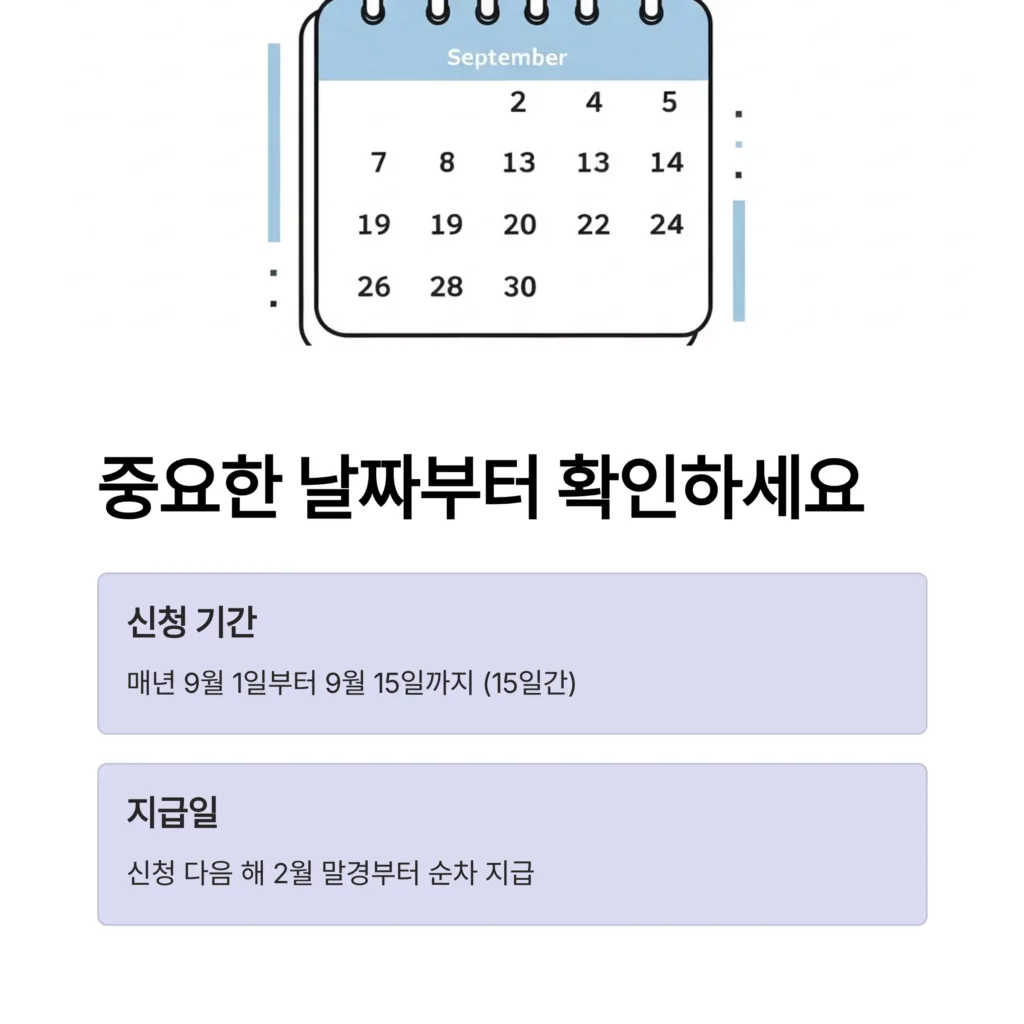 • 신청 기간: 9월 1일 ~ 9월 15일