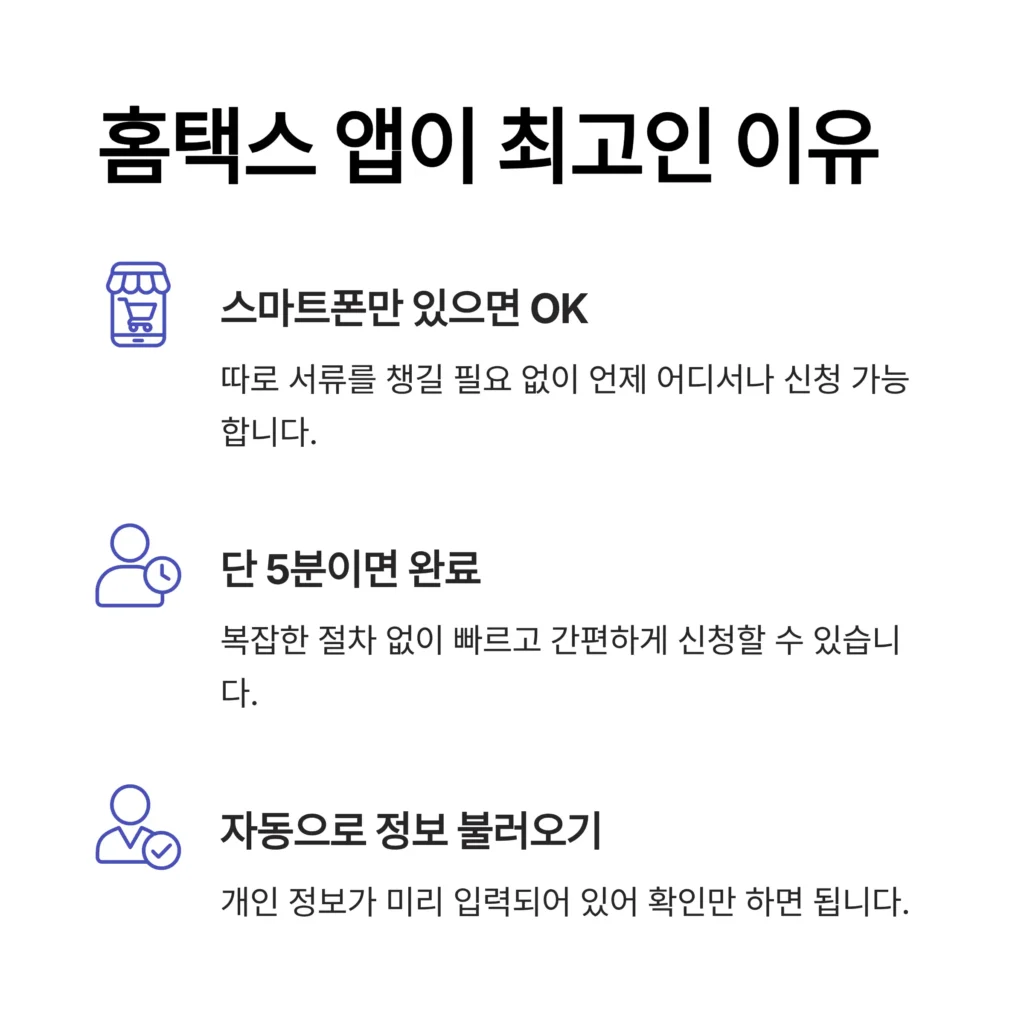 근로장려금은 ‘홈택스’앱으로 신청하는 게 가장 빠르고 간편합니다. 제가 직접 해본 결과 서류를 따로 챙길 필요 없이 스마트폰만 있으면 충분합니다.