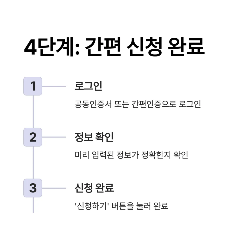 로그인 후 안내에 따라 정보를 입력하면 됩니다. 보통 미리 채워져 있기 때문에 오류가 없는지 확인하고 ‘신청하기’ 버튼만 누르면 끝입니다.