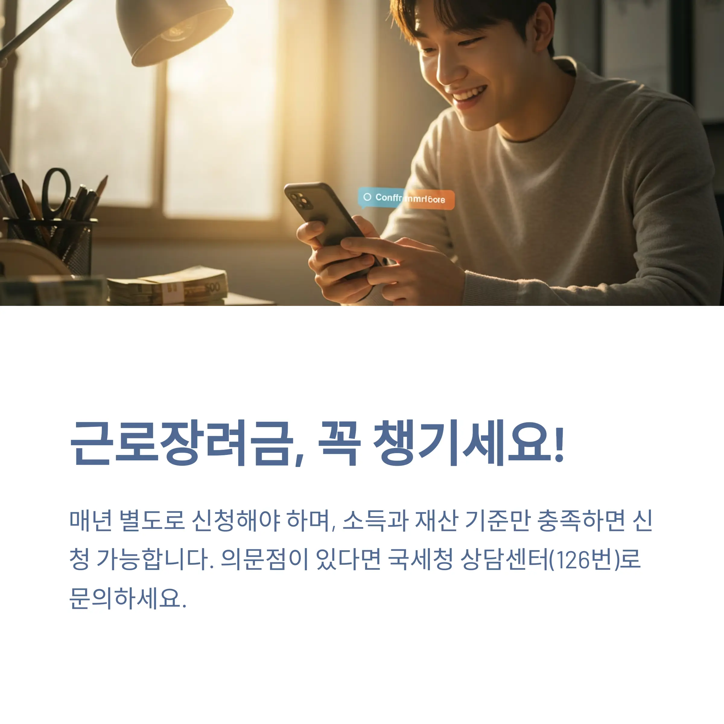 조금이라도 의심이 된다면 국세청 모의계산 서비스를 활용하거나, 직접 국세청 상담센터(126번)로 문의해 정확한 자격을 확인하고 신청 준비를 마치세요.