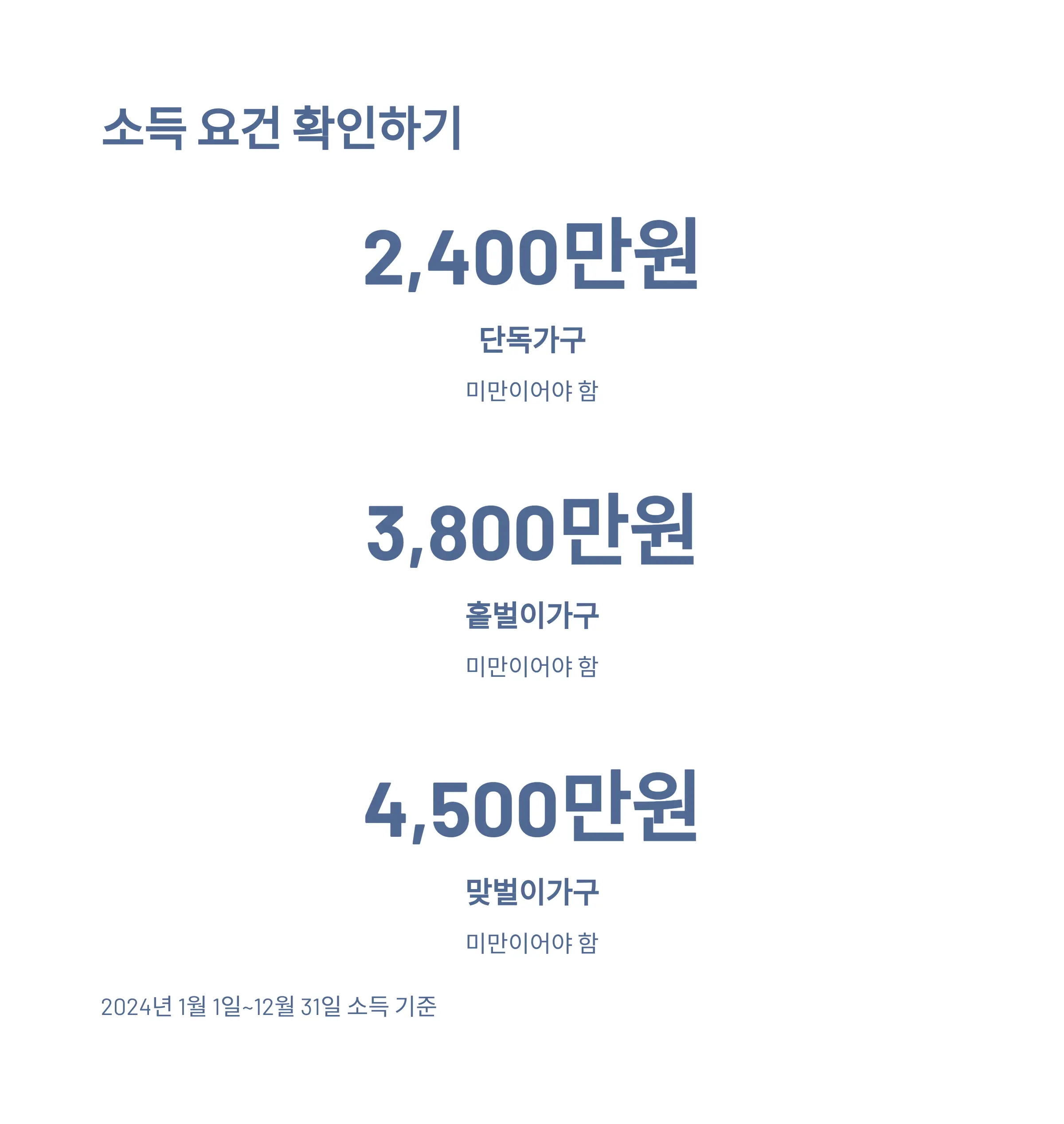 ※ 2025년은 2024년 1월 1일부터 12월 31일까지의 소득을 기준으로 평가합니다.