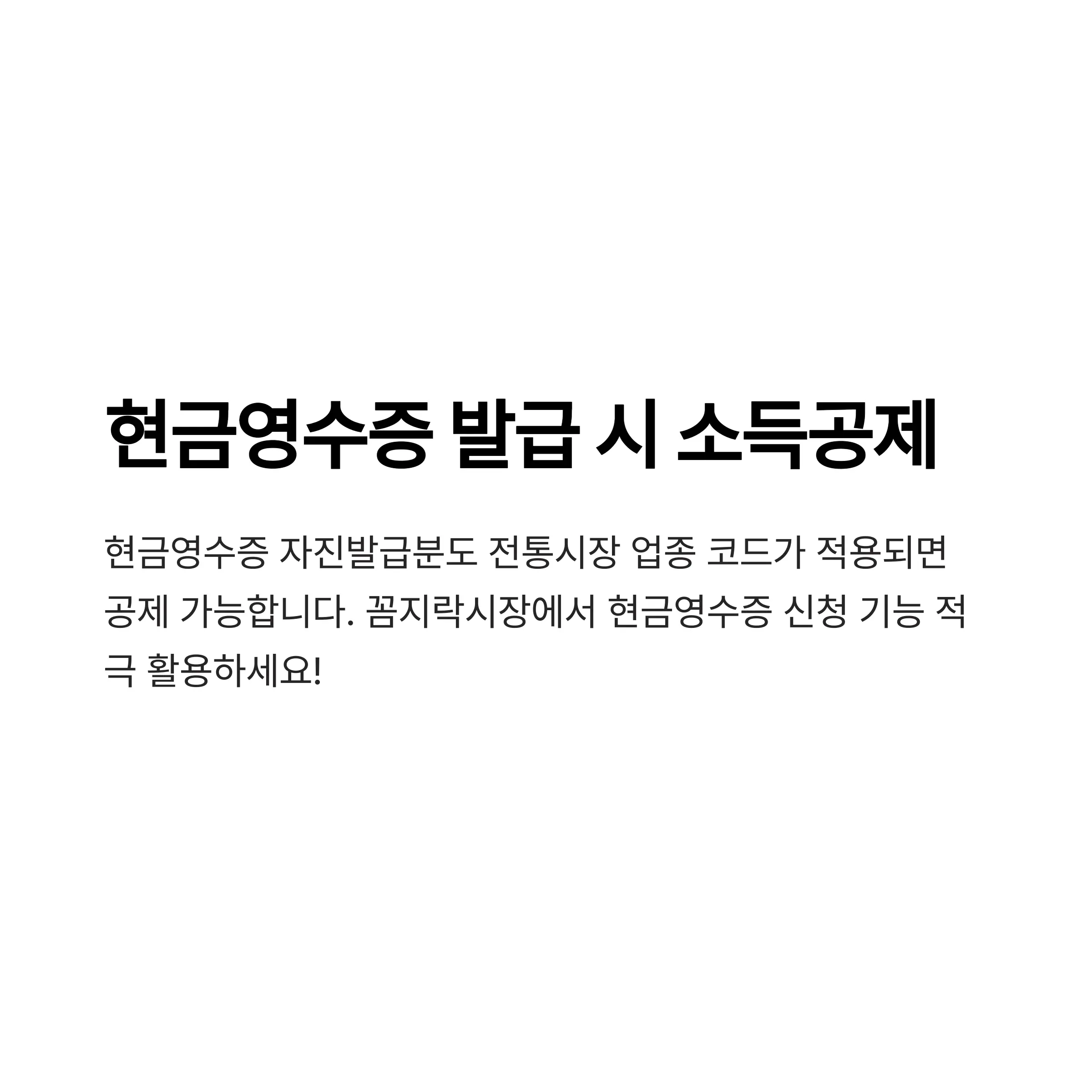 • 이 경우 꼼지락시장 자체 결제 시스템을 이용하는 것이 전통시장 공제 적용에 유리합니다.