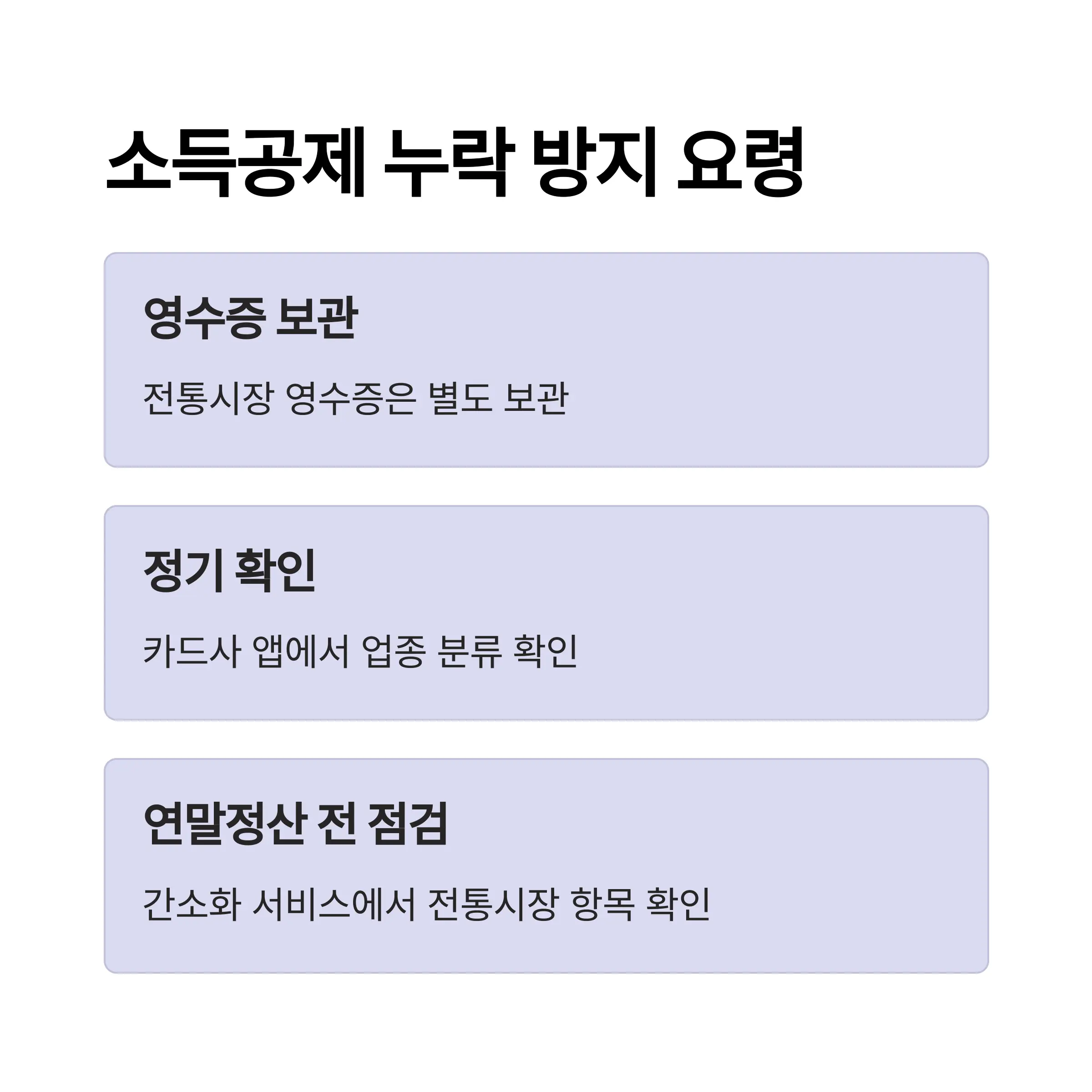 • 연말정산 간소화 서비스 자료에서 전통시장 항목으로 정상 분류되는지 사전 확인해야 합니다.