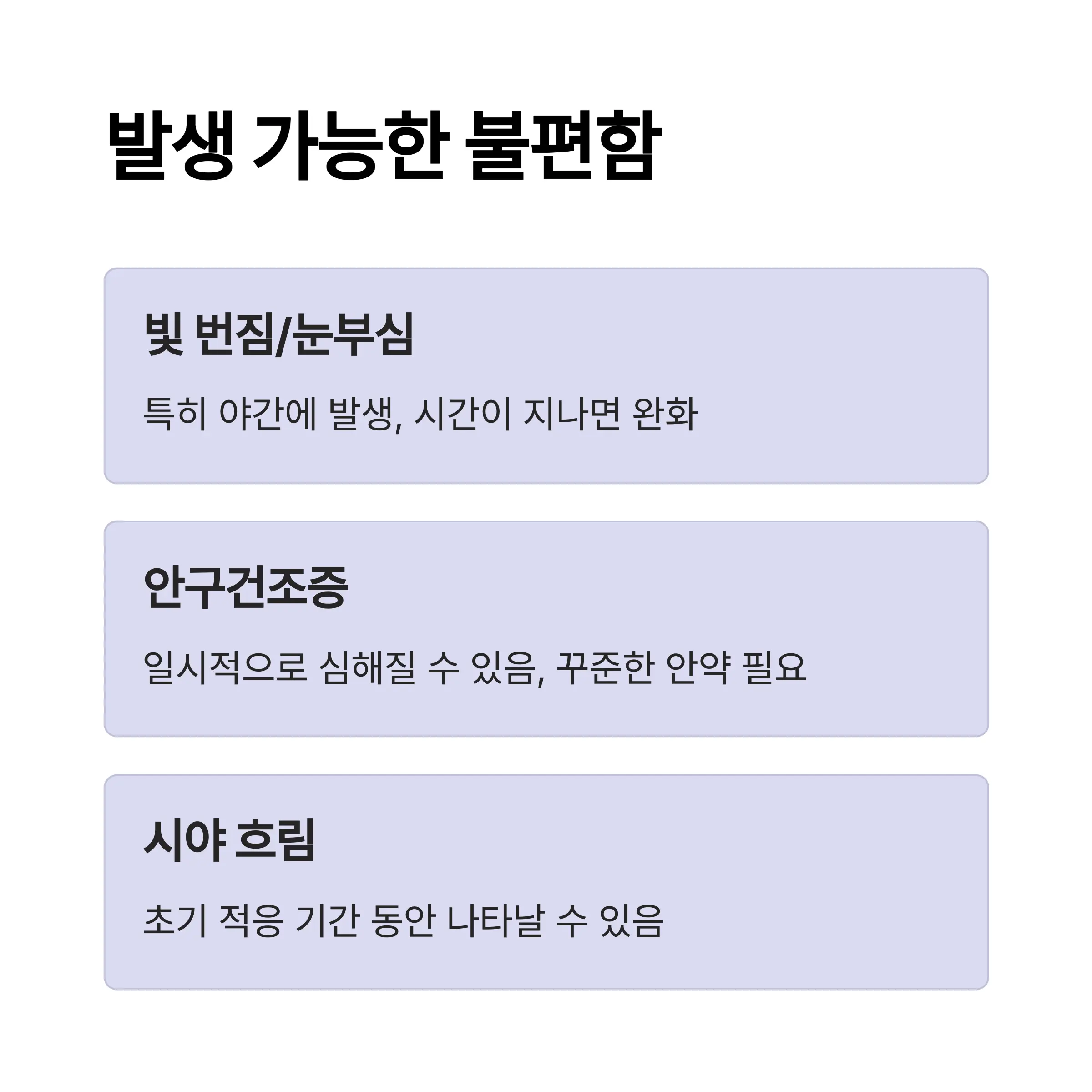 발생 가능한 불편함 (빛 번짐, 안구건조증 등)