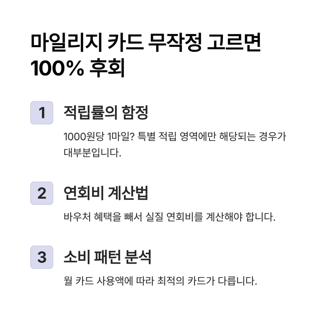1000원당 1마일? 여기가 제일 좋네! 라고 생각하고 덜컥 가입했다간 큰코다치기 쉽습니다. 진짜 고수들은 아래 3가지를 반드시 확인합니다.