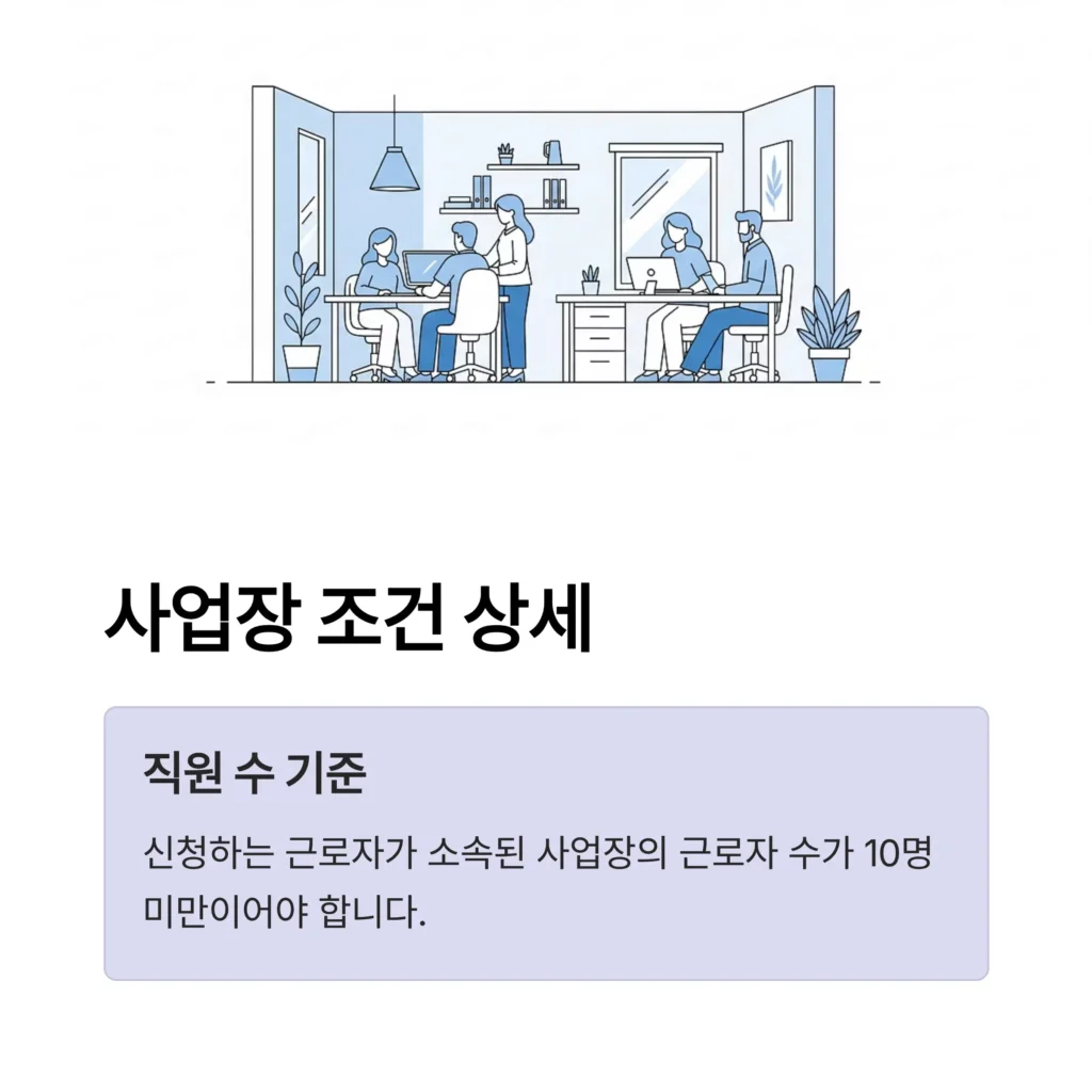 신청하는 근로자가 소속된 사업장의 근로수가 10명 미만이어야 합니다.