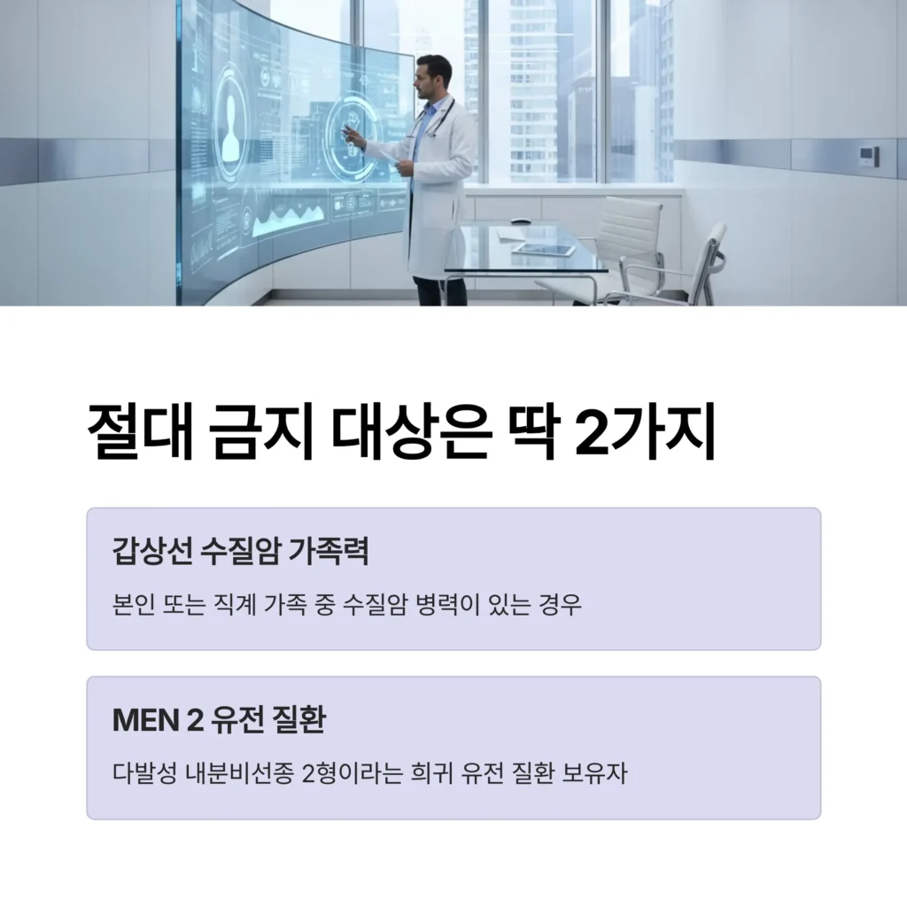 - 경고의 대상은 매우 희귀한 특정 갑상선암