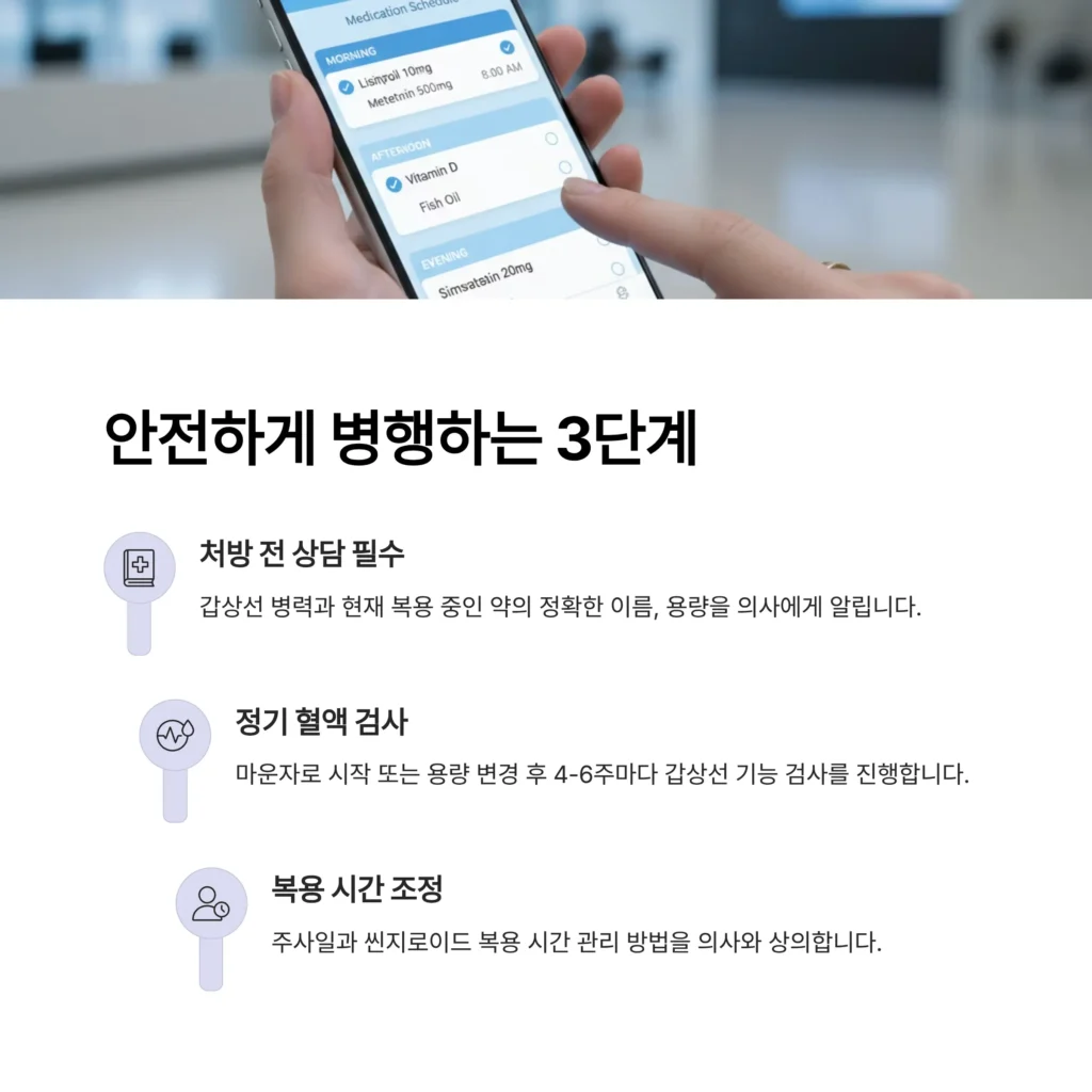 갑상선 호르몬제는 매우 예민한 약입니다. 혈중 농도가 조금만 변해도 기능이 과하거나 부족해질 수 있습니다. 그래서 매일 아침 공복에 다른 약이나 음식과 간격을 두고 복용하여 장에서 일정하게 흡수되도록 하는 것이 매우 중요합니다.