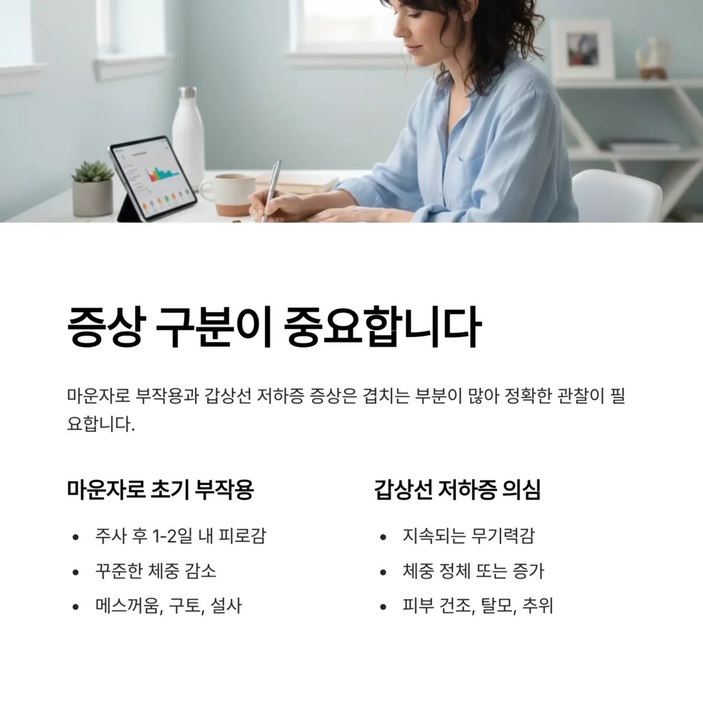 | 증상 | 마운자로의 흔한 초기 부작용 | 갑상선 기능 저하증 의심 증상 |