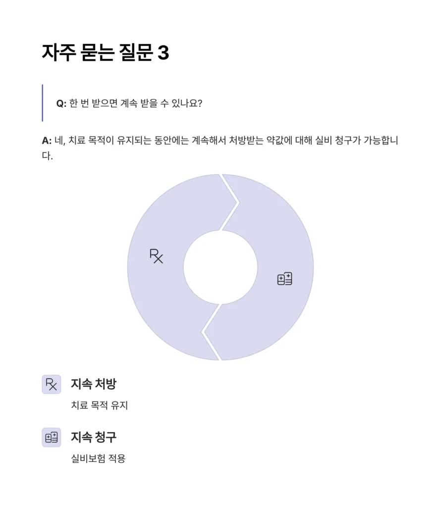 A: 네 치료 목적이 유지되는 동안에는 계속해서 처방받는 약값에 대해 실비 청구가 가능합니다.