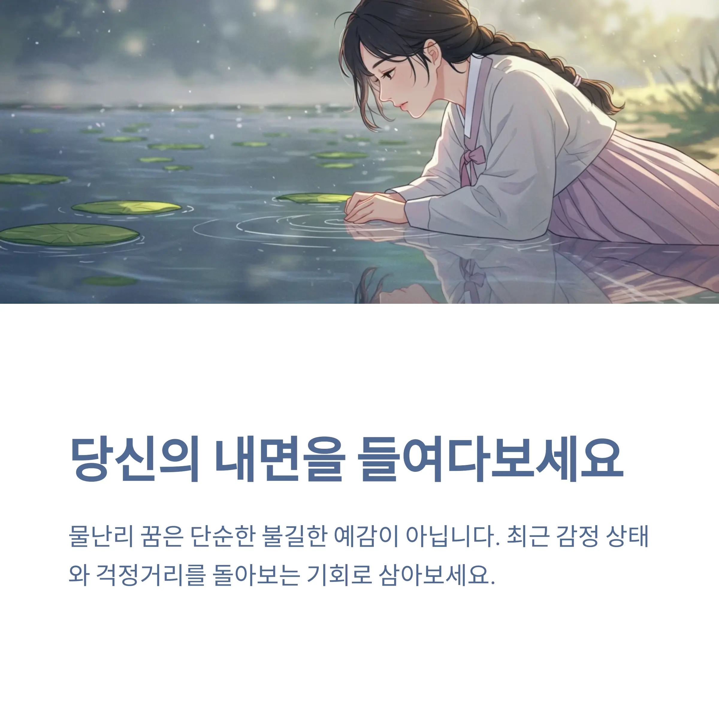 꿈은 꿈일 뿐이지만, 가볍게 지나치기보다는 지금 내 마음이 어떤지 한 번쯤 돌아보면 좋겠습니다. 그 속에 나도 모르게 쌓여 있던 감정과 삶의 방향이 숨어 있을 수 있으니까요.