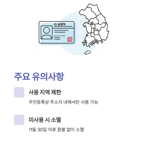 • 사용 지역 제한: 지원금은 신청자 본인의 주민등록상 주소지 내에서만 사용할 수 있습니다.