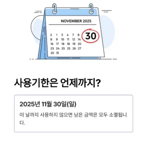 • 미사용 시 소멸: 사용기한이 지나면 남은 금액은 환불 없이 소멸되므로 11월 30일까지 모두 사용하는 것이 중요합니다.