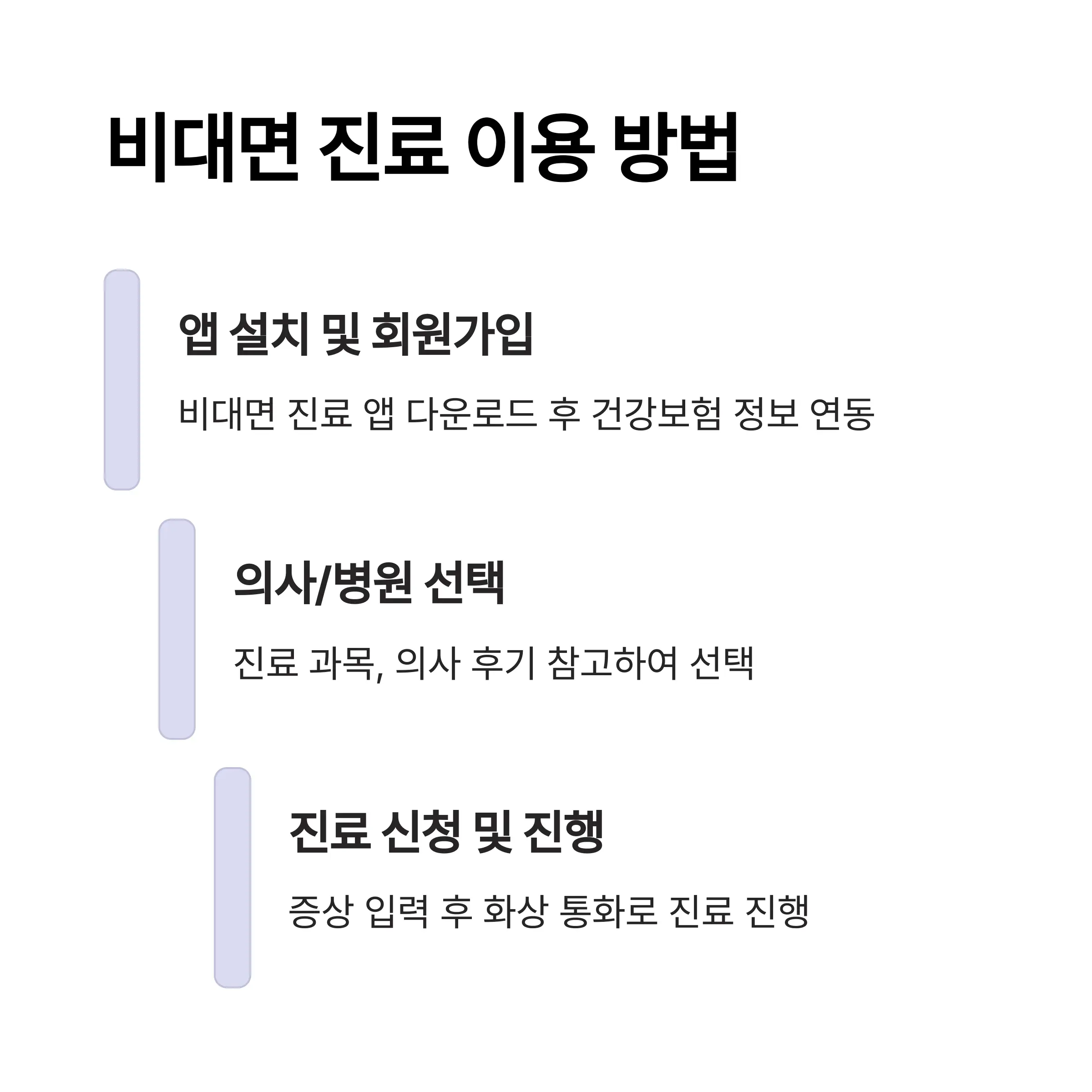 비대면 진료는 다음과 같은 단계로 진행됩니다.