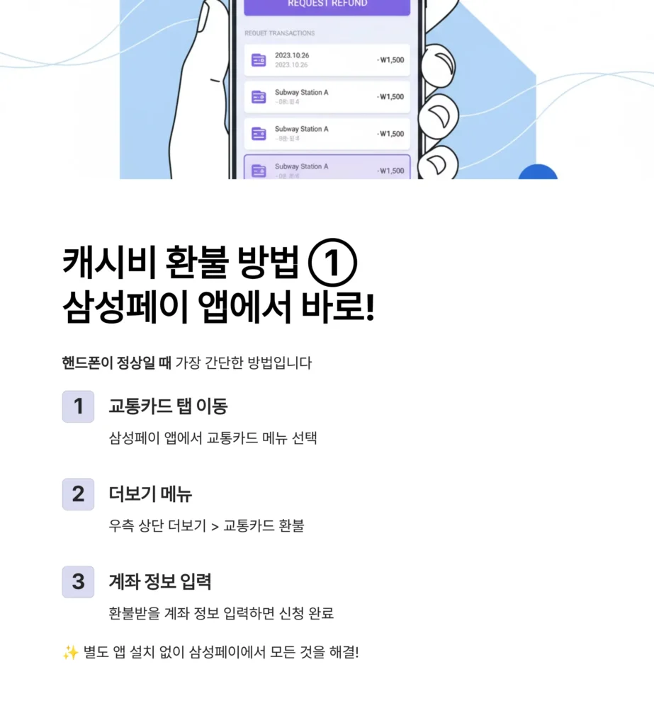 삼성페이 교통카드 환불 이제 고민은 좀 해결 되셨나요? 핵심은 단 두가지 입니다.