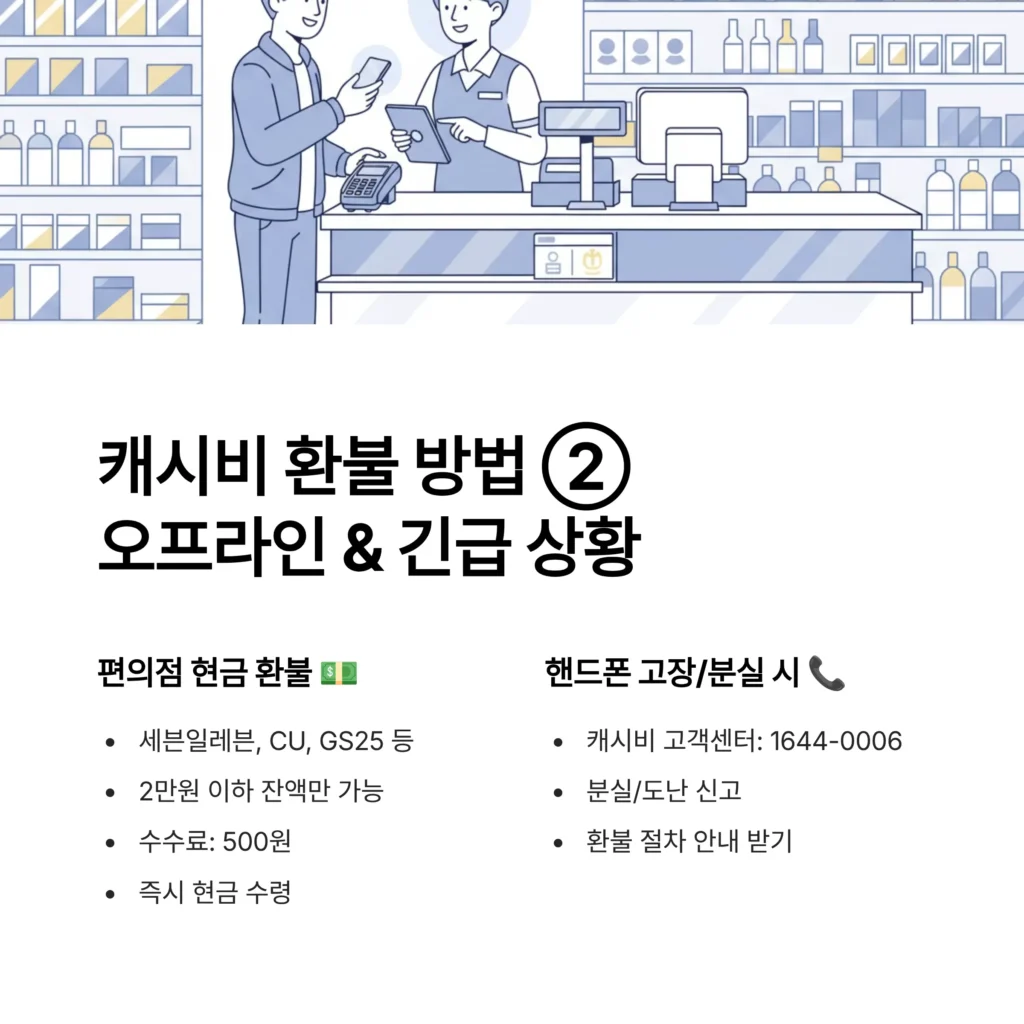 캐시비 역시 오프라인에서 현금 환불이 가능합니다.
