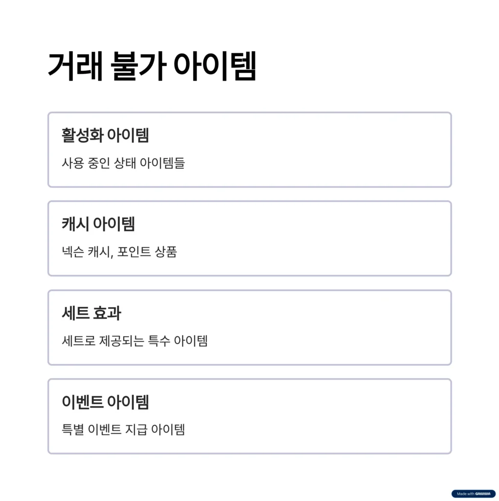 모든 아이템이 플리마켓에서 거래되는 것은 아닙니다. 거래 가능/불가 아이템을 명확히 구분해야 혼동을 막을 수 있습니다.