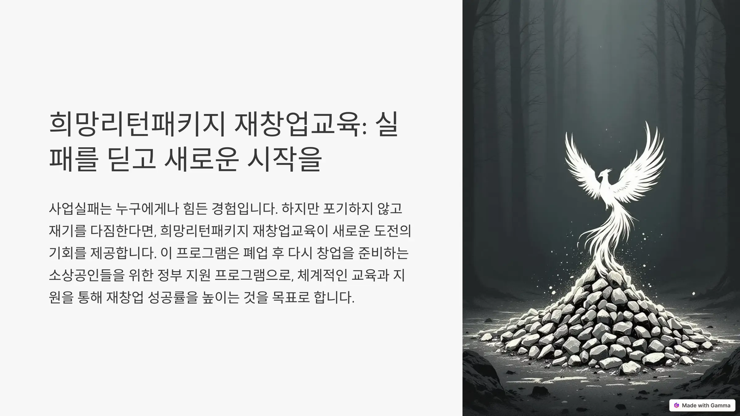 희망리턴패키지 재창업교육은 실패를 딛고 새로운 도전에 나서는 소상공인들에게 큰 힘이 됩니다. 저 역시 이 교육을 통해 재기의 발판을 마련할 수 있었습니다.