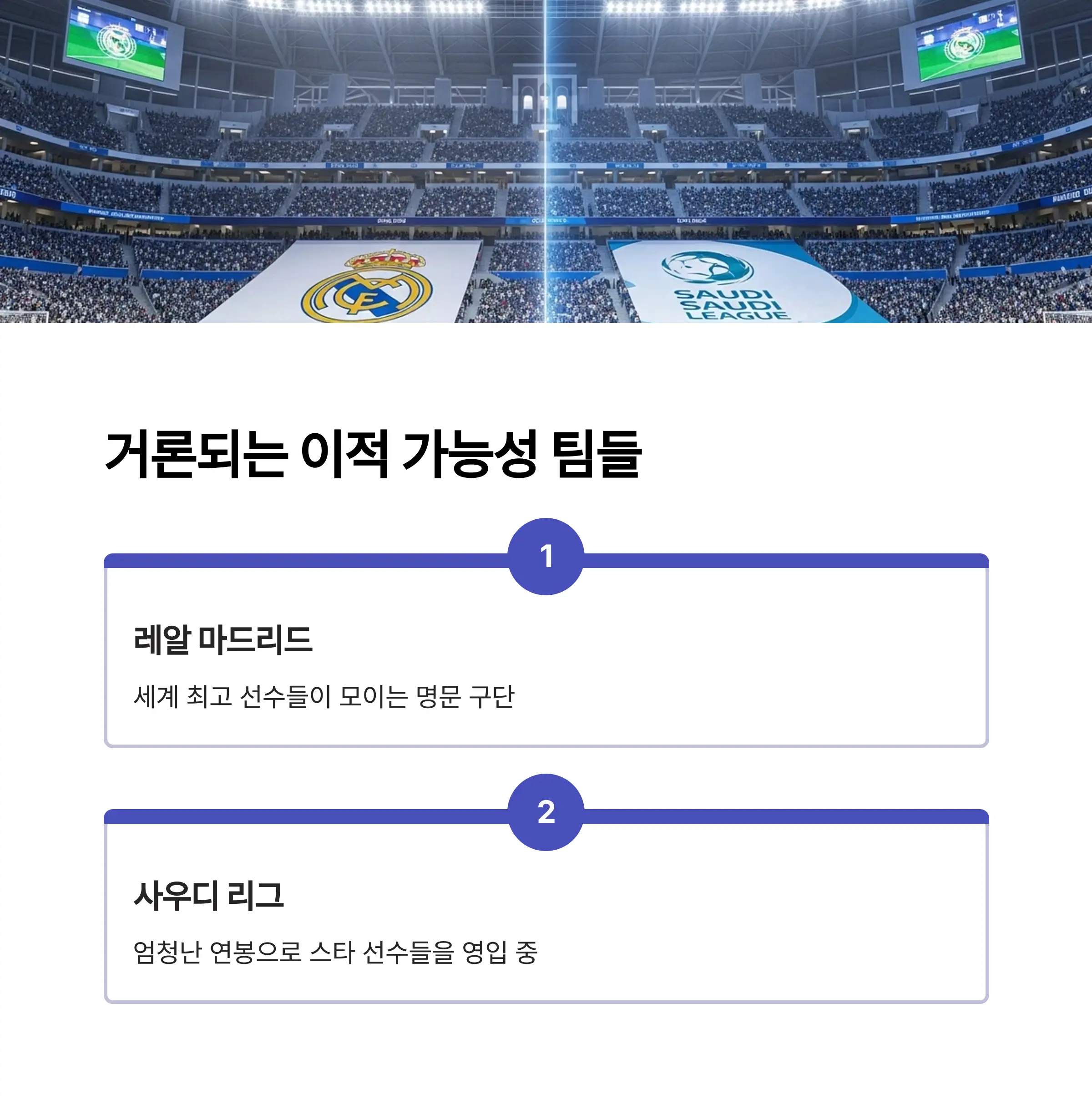 어떤 팀들이 거론되고 있나? (레알 마드리드? 사우디?)