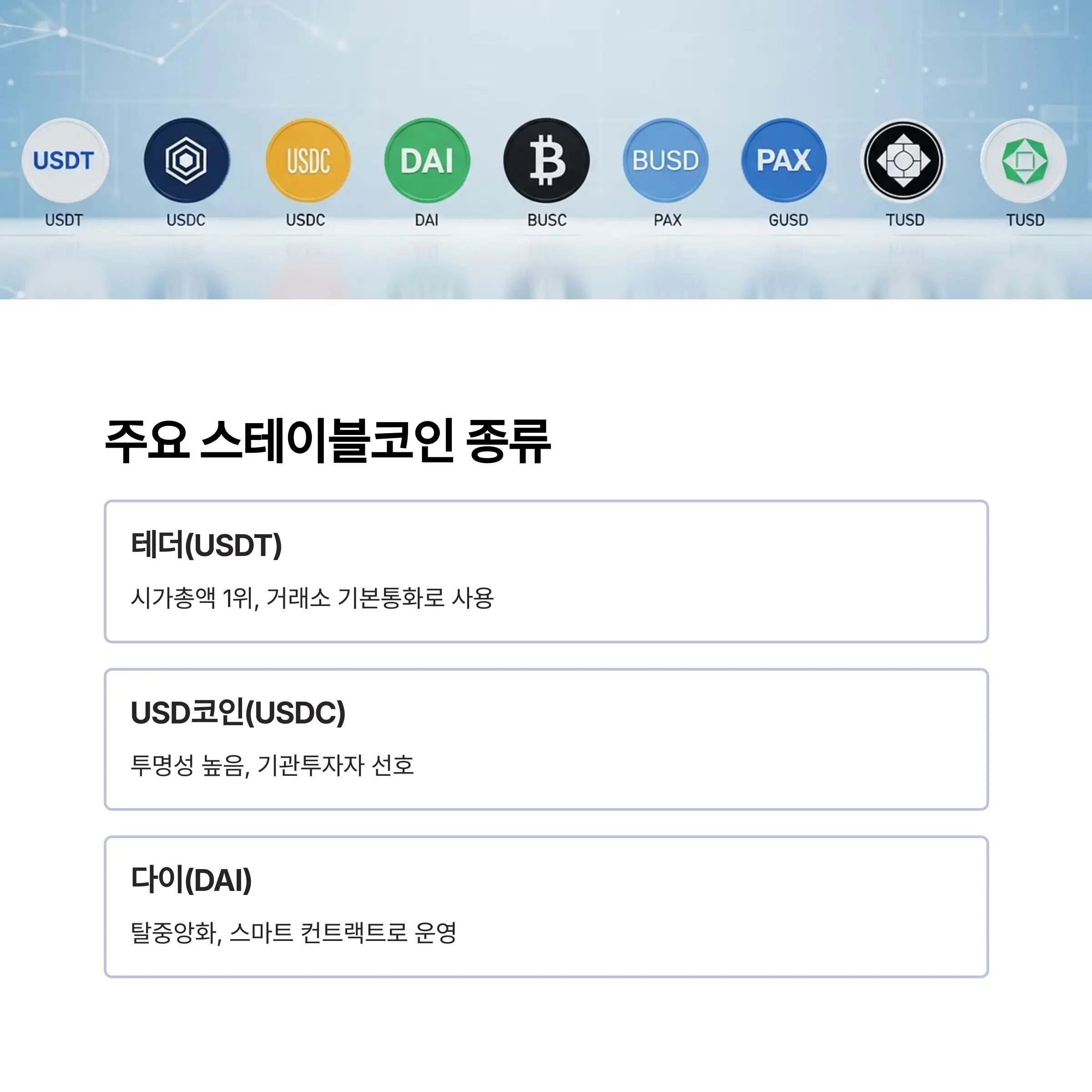 스테이블코인 종류와 특징 (USDT, USDC, DAI 등)