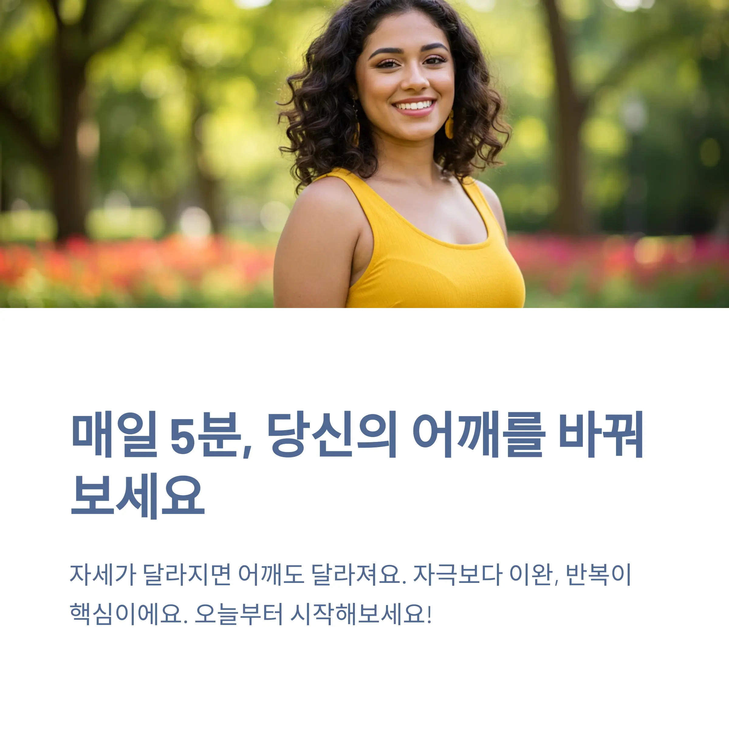하루 5분이라도 꾸준히 내 몸을 돌보다 보면, 거울 속 어깨선이 분명 달라질 거예요.