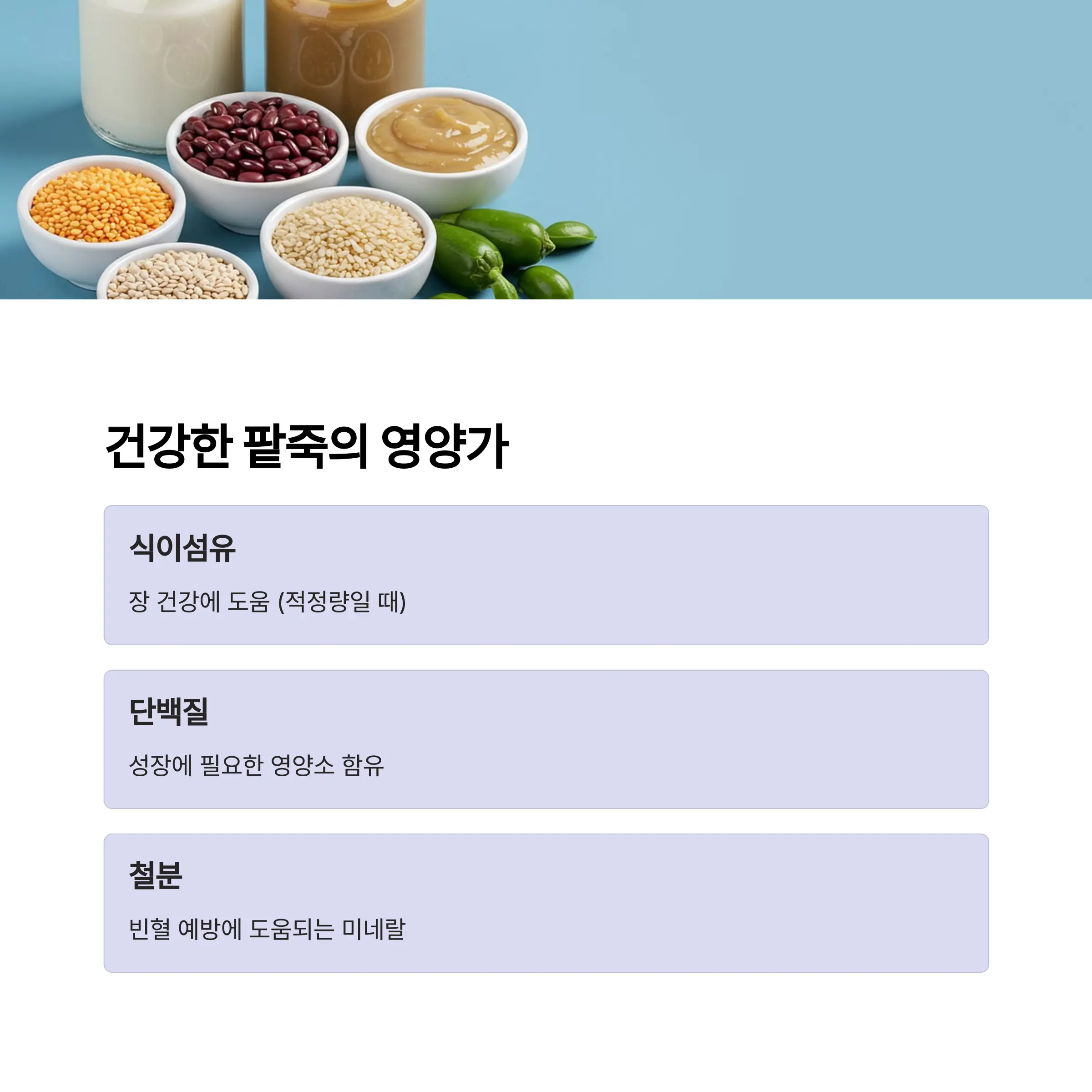 그리고 무엇보다 중요한 것은 식감입니다. 아이는 ‘입 안에서 껄끄러운 느낌’에 민감하기 때문에, 껍질이 남아 있는 형태의 팥죽은 잘 먹지 않으려 할 수 있습니다.