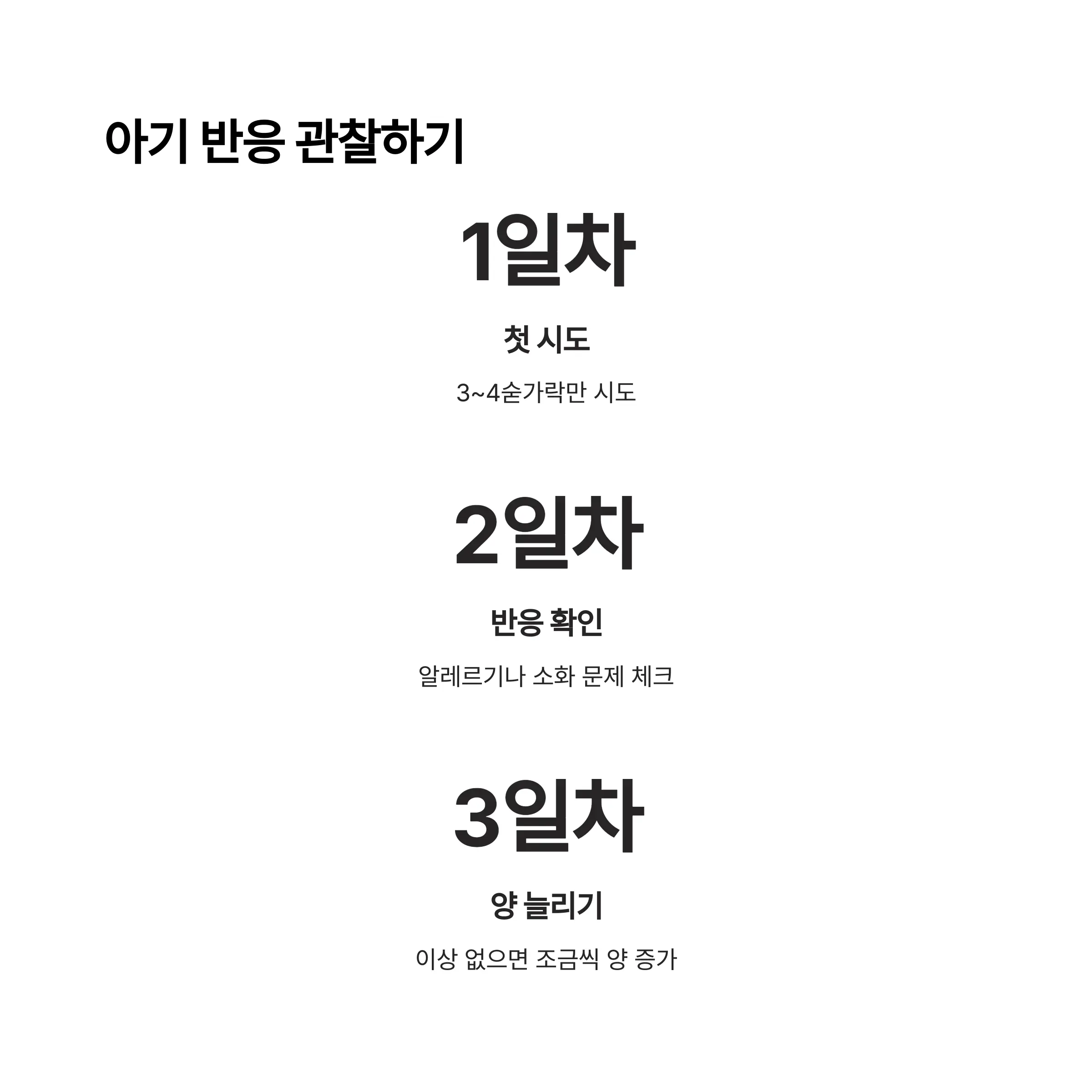 꿀팁: 처음 먹일 땐 3~4숟가락만 시작하고, 반응을 확인하세요.