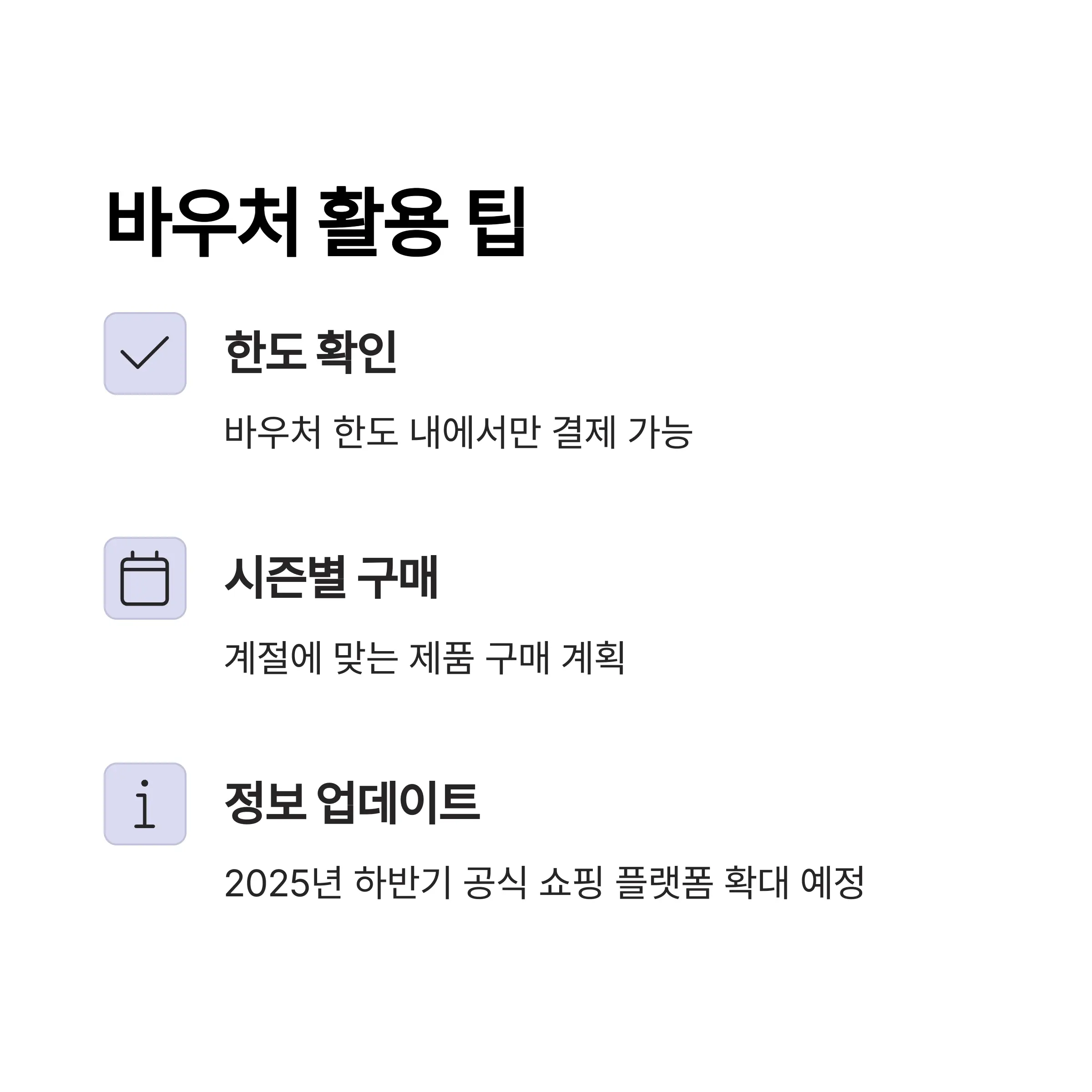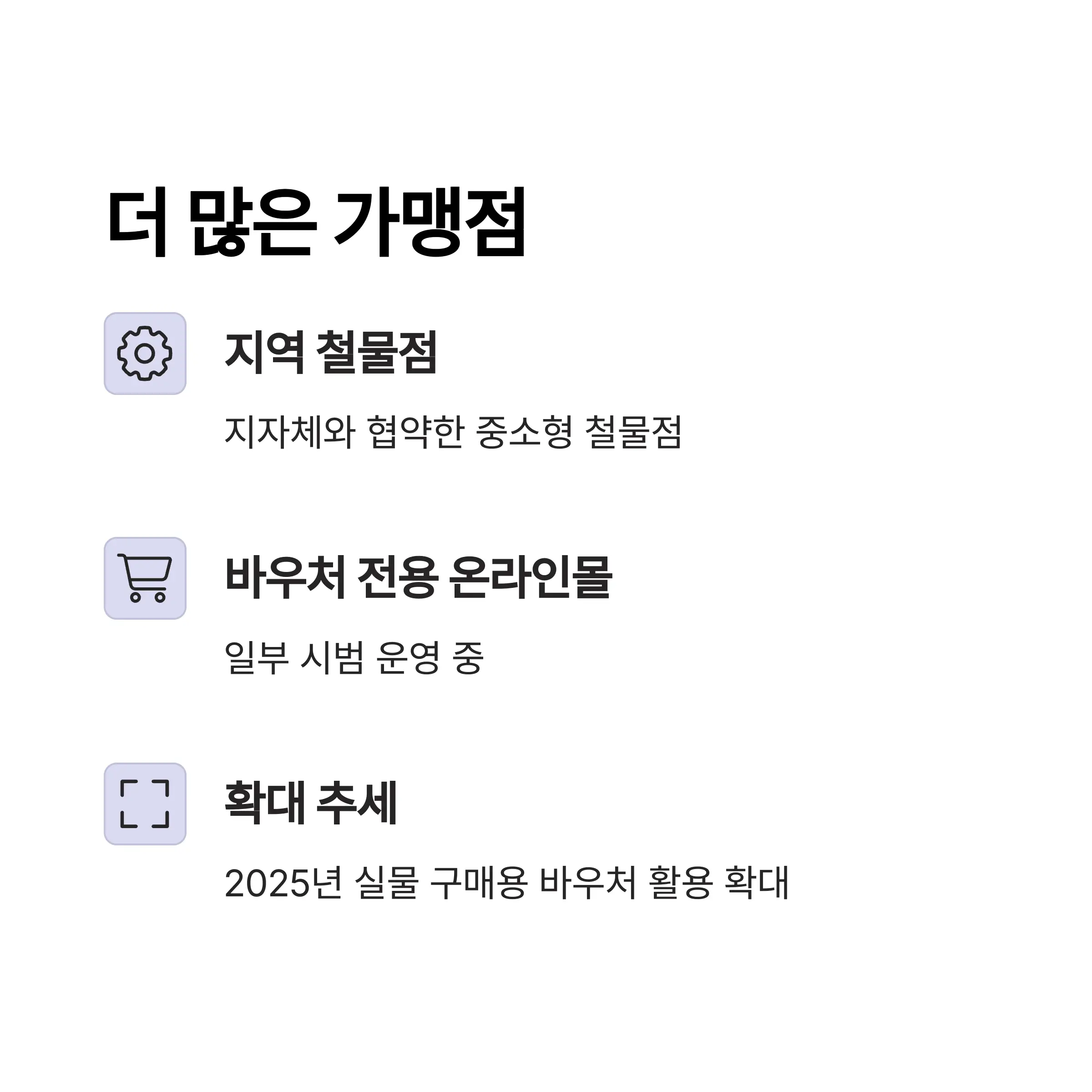 2025년에는 특히 ‘실물 구매용 바우처’ 활용이 더 확대되어, 사용처 다양성이 증가하고 있습니다.