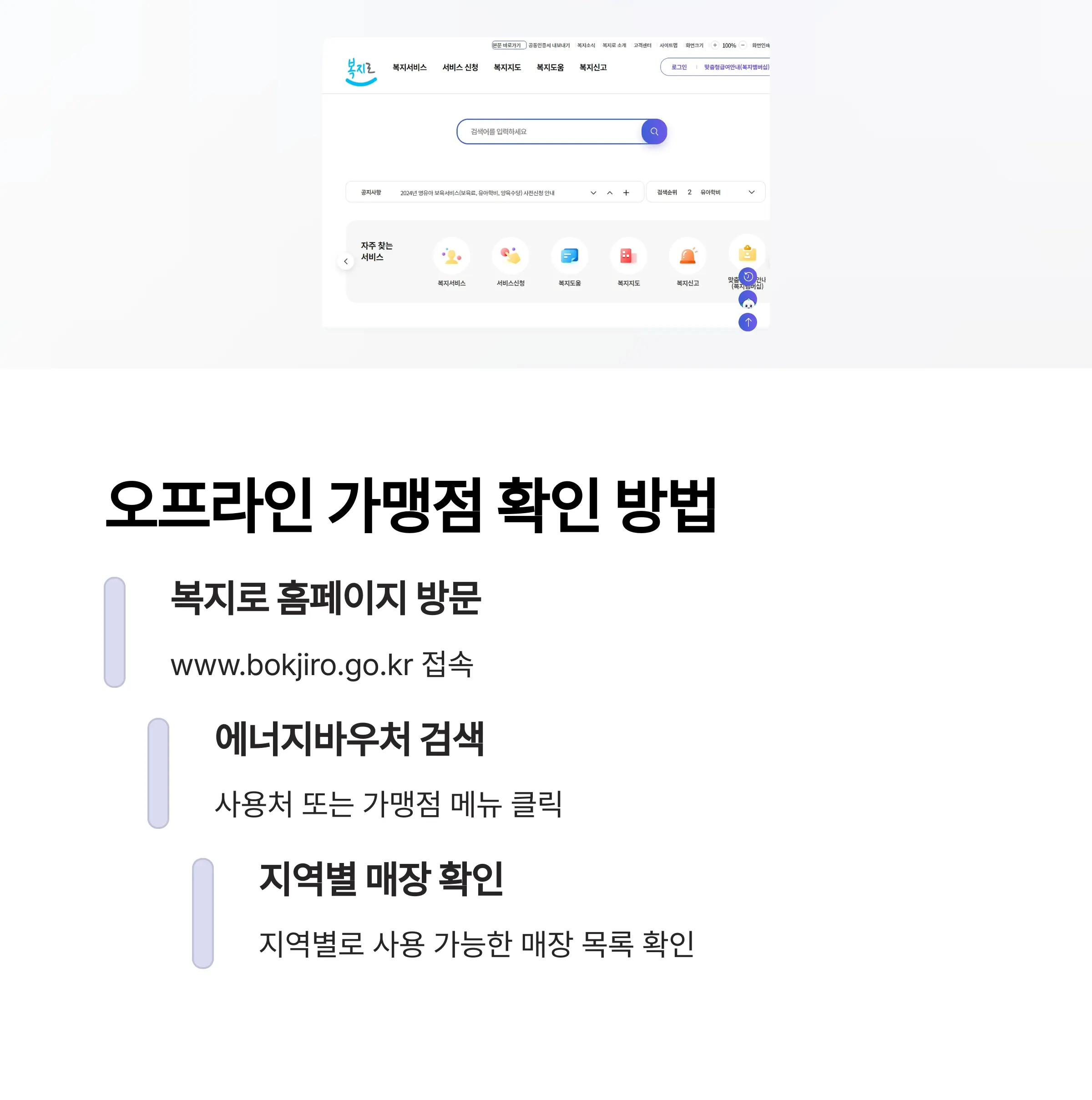 에너지바우처는 단순히 전기요금 할인용이 아니라, 실제 필요한 물품을 구매할 수 있는 실질적 복지 수단입니다. 하지만 그만큼 사용 가능한 가맹점 정보를 알고 있어야 제대로 활용할 수 있습니다.