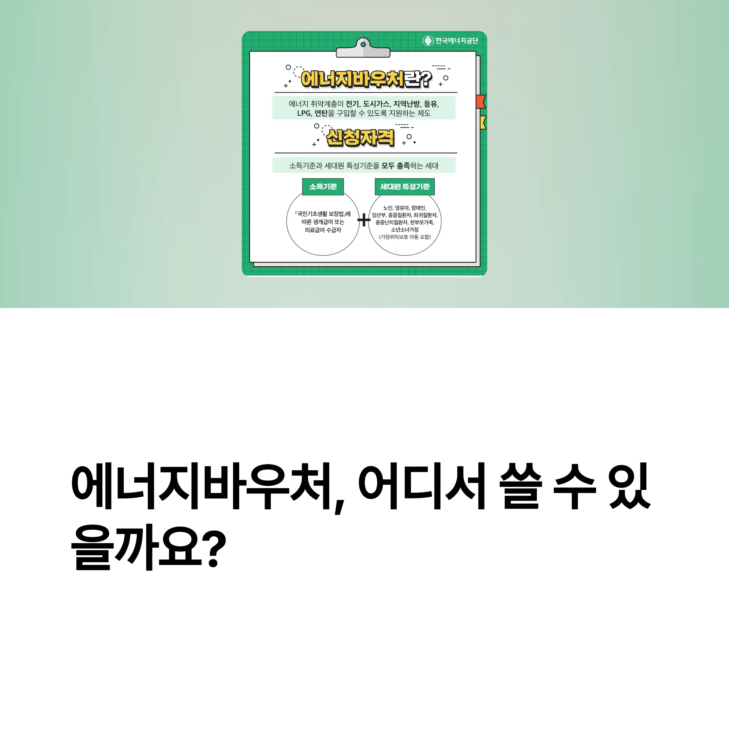 에너지바우처는 정부가 저소득층 가구를 지원하기 위해 제공하는 복지제도입니다. 보통 전기요금이나 도시가스 요금에 자동으로 감면되는 방식으로 알려져 있지만, 실제로는 정해진 가맹점에서 물품을 직접 구매하는 형태로도 활용이 가능합니다.