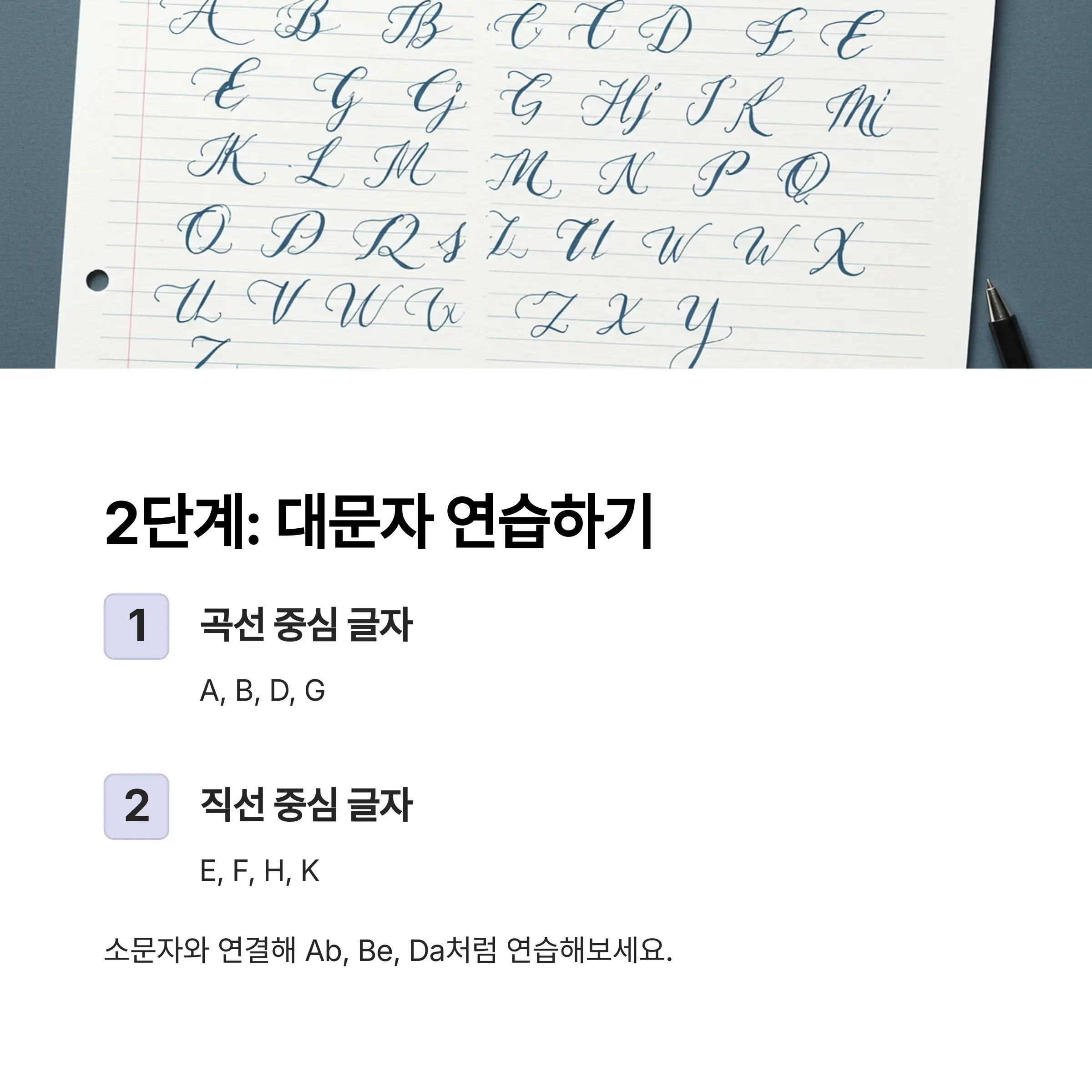 알파벳부터 문장까지 단계별 영어 필기체 연습법