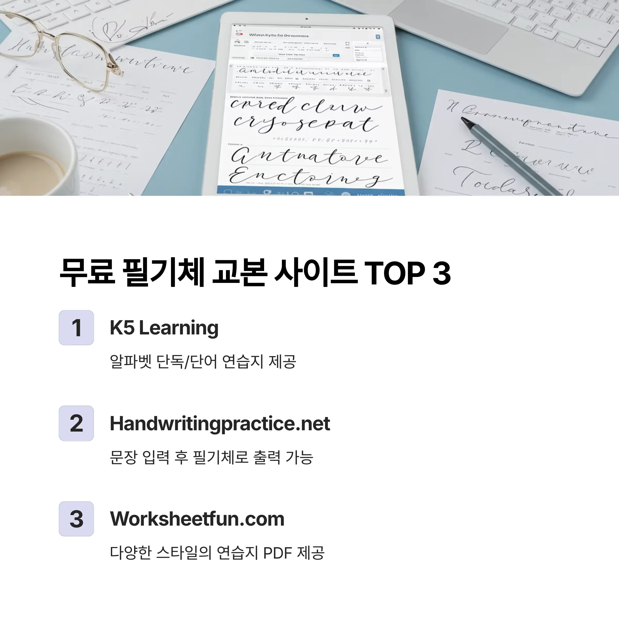무료 영어 필기체 교본 사이트 TOP 3