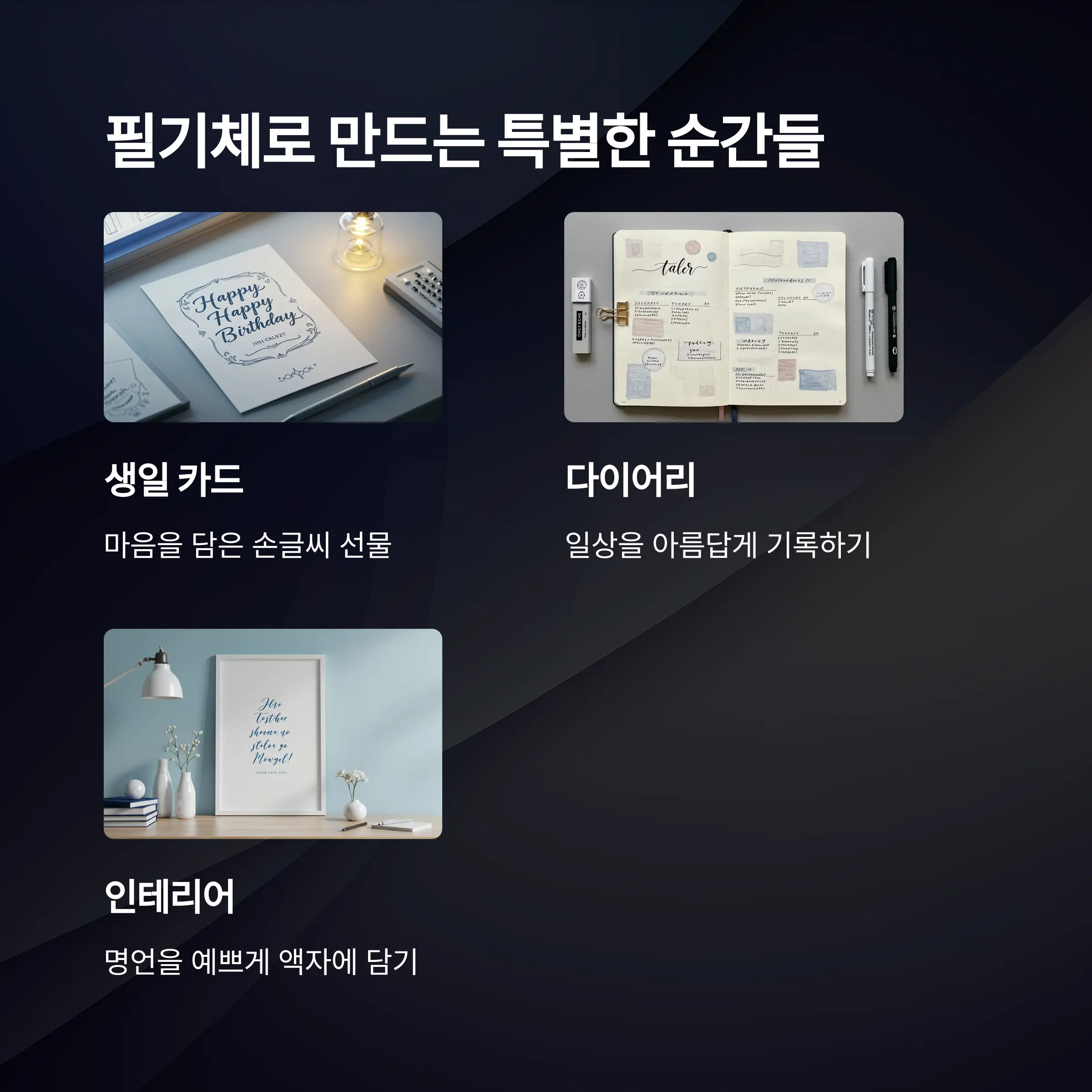 꾸준히 쓰다 보면 손에 감이 생기고 어느 순간 나만의 손글씨 스타일이 생깁니다.