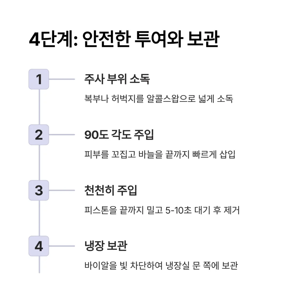 - 세균 감염: 가장 크고 심각한 위험입니다. 한번 개봉한 약물을 여러번 바늘로 찌르는 과정에서 세균이 번식할 수 있습니다.