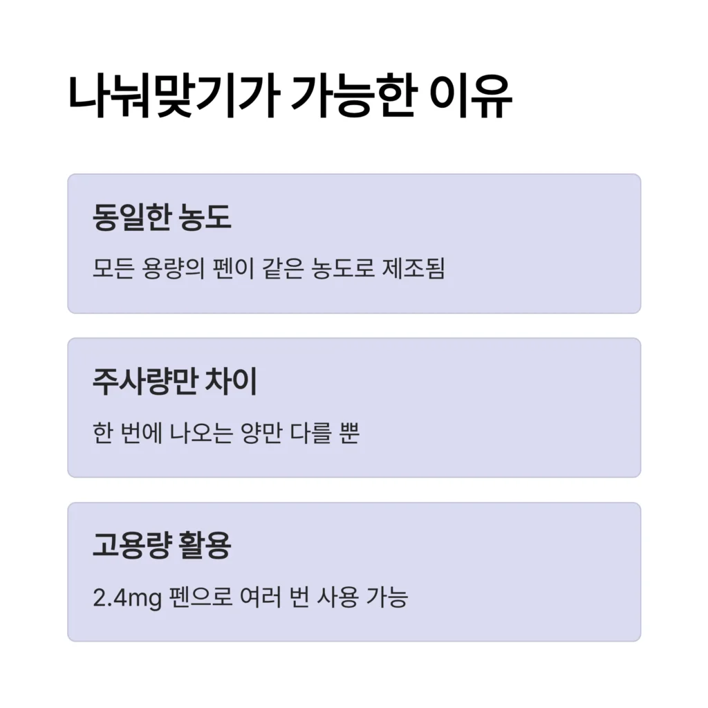 매달 수십만원에 달하는 가격표 앞에 한숨부터 나오시나요? 효과는 확실하다는데 비용 때문에 시작을 망설이거나 혹은 너무 강한 초반 부작용에 중단을 고민하고 계실 지 모릅니다. 그래서 펜 하나를 여러 번에 나눠 맞는다는 솔깃한 방법에 대해 여기까지 찾아오셨을 겁니다. 과연 안전할까요? 어떻게 하는 걸까요?