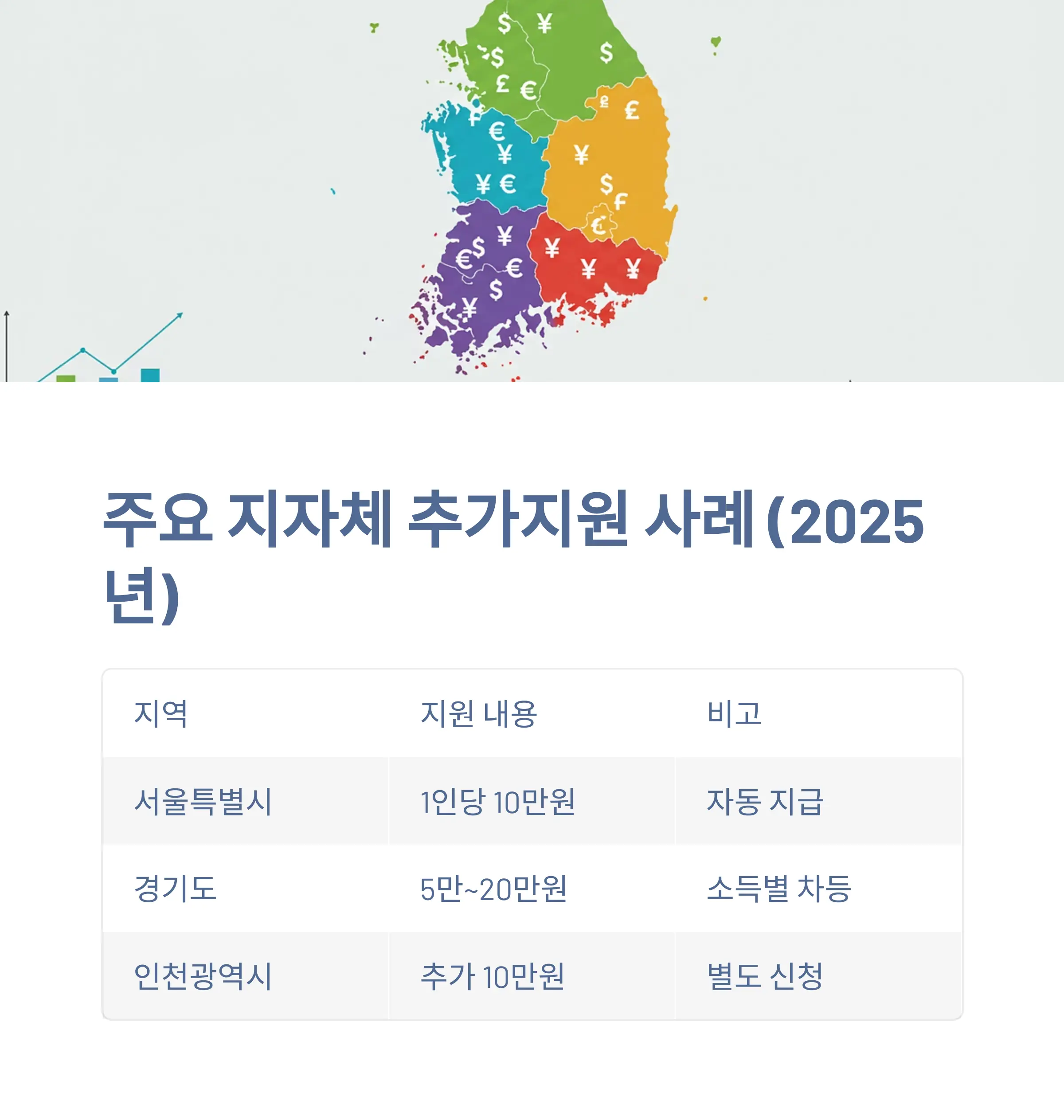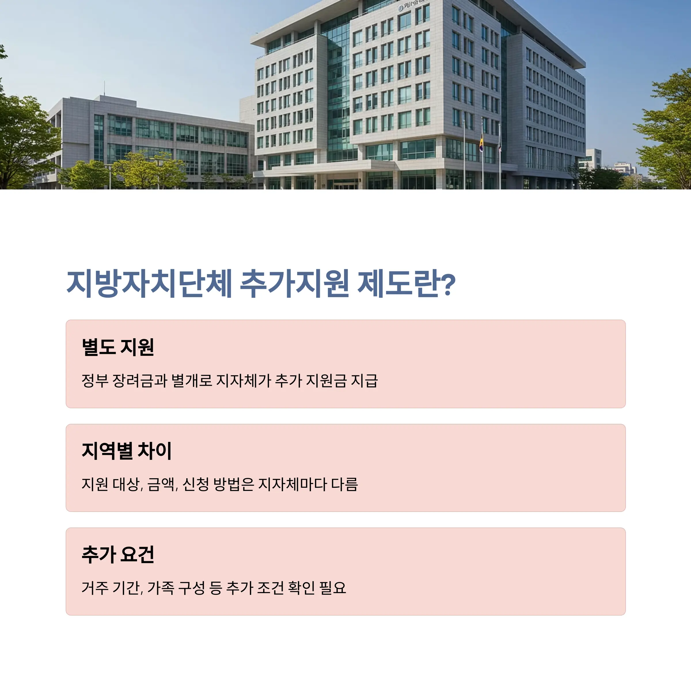 2025년에도 다양한 지자체가 적극적으로 추가 지원을 계획하고 있습니다. 정부 장려금만 믿고 지나치지 말고, 지자체 추가 지원금까지 꼼꼼히 챙기는 것, 그것이 진짜 알뜰한 경제생활의 시작입니다.