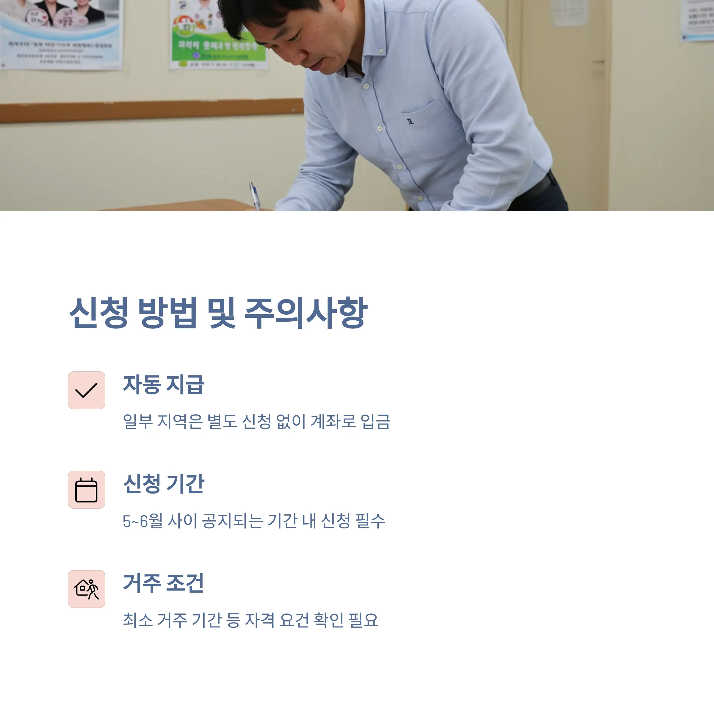 - 일부 지역은 자동 지급, 일부 지역은 별도 신청 필요합니다.