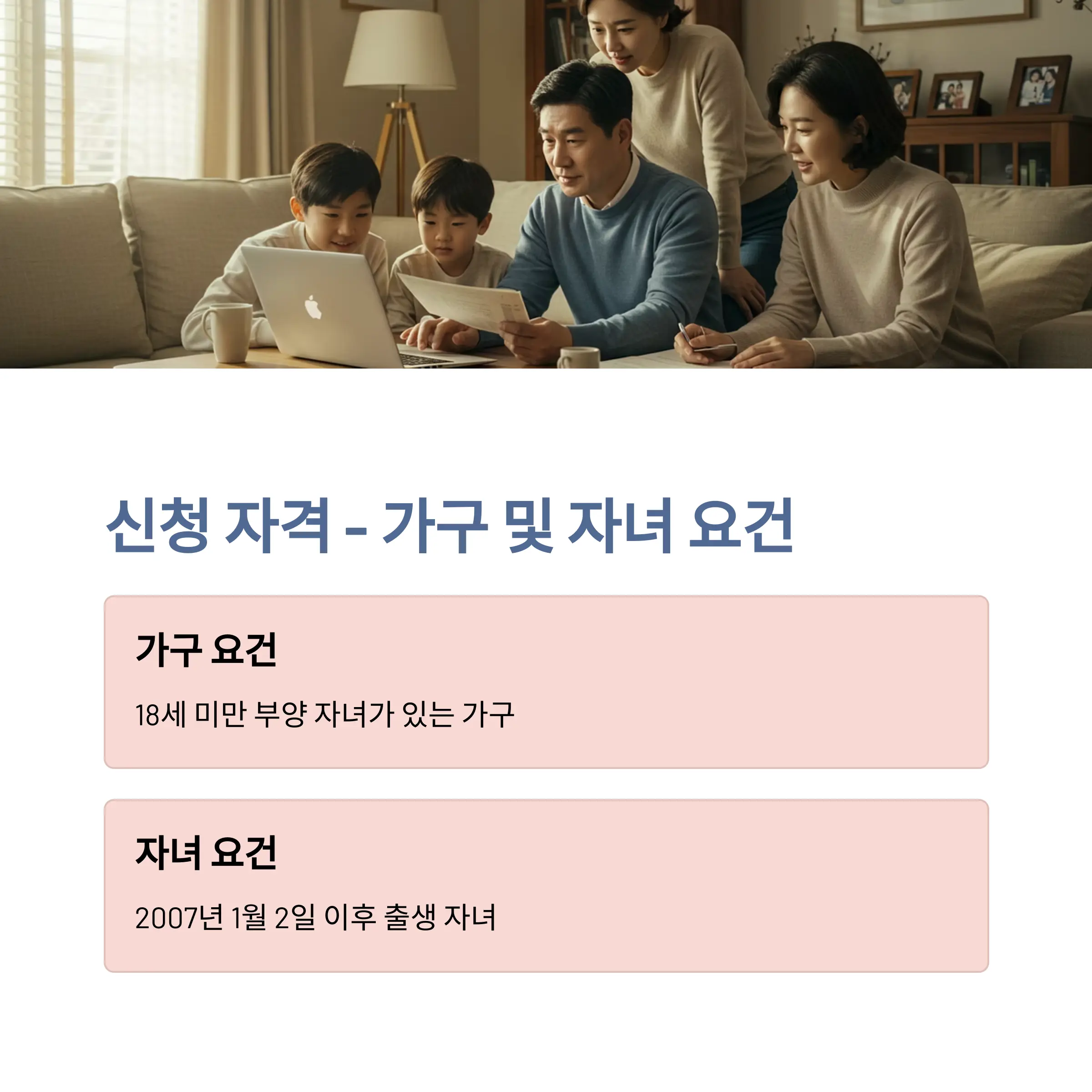 자녀의 나이 기준은 신청 연도를 기준으로 하므로, 올해 만 18세가 되는 자녀는 대상에 포함될 수 있는지 꼭 확인해야 합니다.