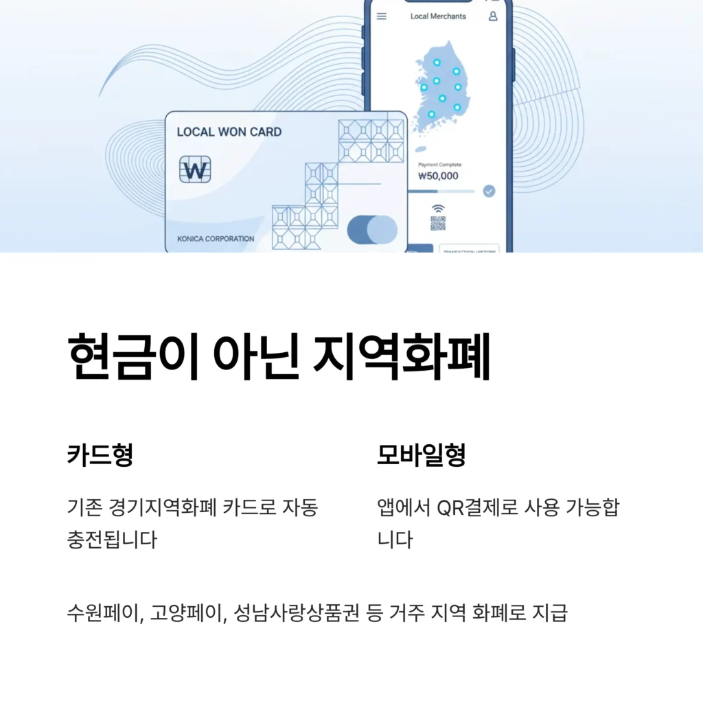 - 카드형: 기존에 사용하던 경기지역화폐 카드가 있다면 해당 카드로 25만원이 자동 충전됩니다.
