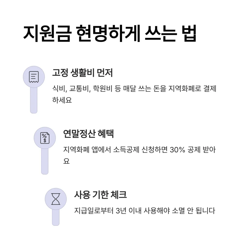 지급일로부터 3년 이내에 사용해야 하며 이후에는 소멸됩니다. (단, 시/군 정책별로 다를 수 있으니 앱에서 확인 필수)