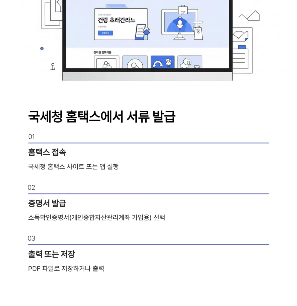 - 소득확인증명서 (개인종합자산관리계좌 가입용): 국세청 홈택스에서 발급