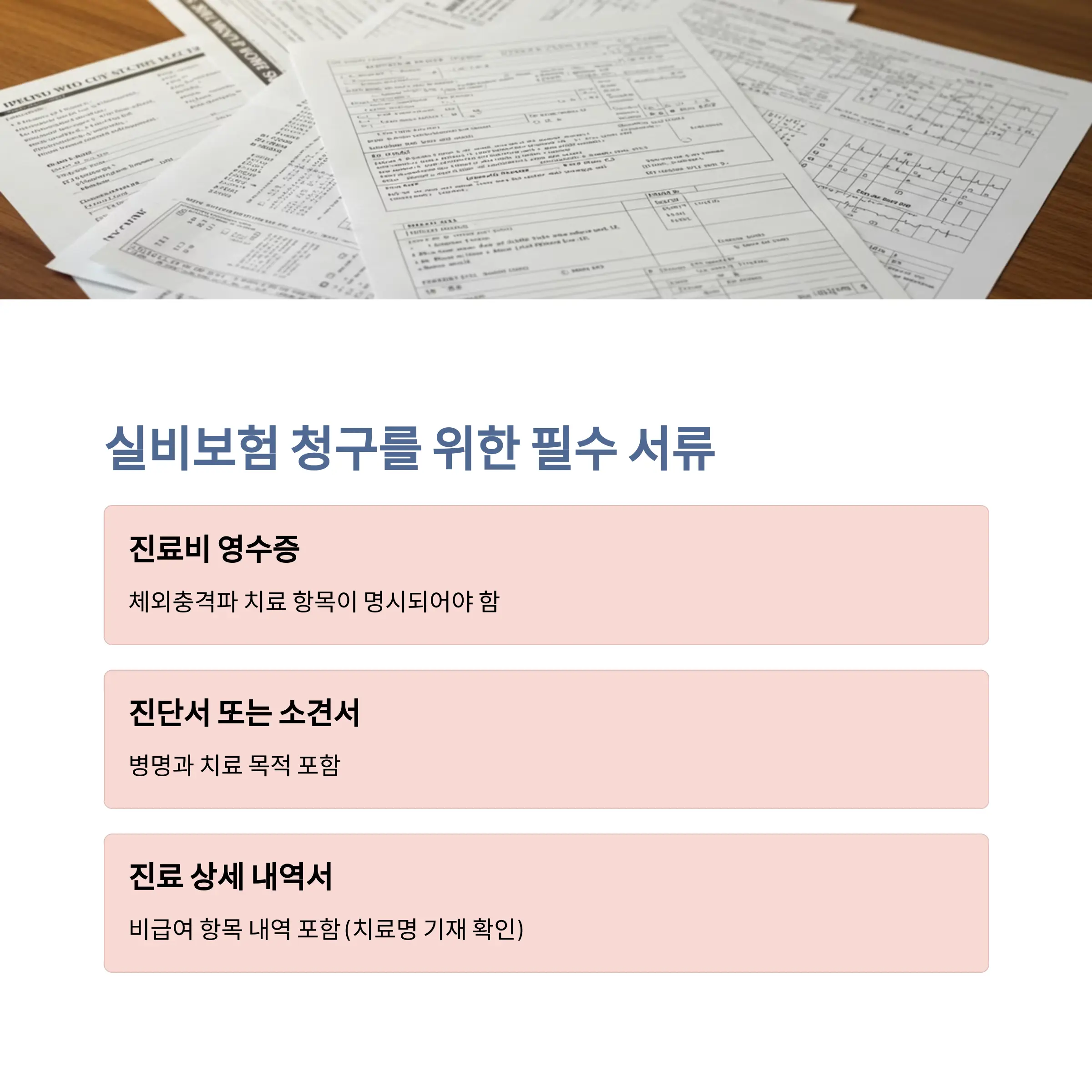 - 진료비 영수증: 체외충격파 치료 항목이 명시돼야 함